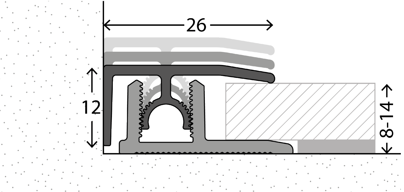 Das Aluminium - Clipprofilsystem ist konstruiert für Belagsstärken von 4 bis 7,5 mm. Durch das praktische Clipsystem lässt sich dieses Übergangsprofil schnell und einfach montieren. Zusätzlich bietet es eine perfekte, moderne Optik ohne Schraublöcher, bei ausreichend Raum für Dehnungsfugen
