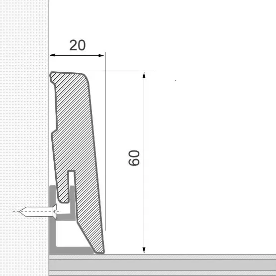 - Deckabmessung mit Clipmontage: 60 x 20 x 2.600 mm