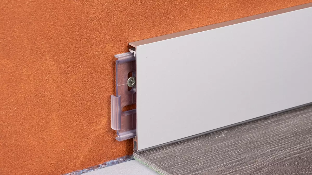 Die Aluminium-Clips-Sockelleisten sind universell einsetzbar und für jegliche Bodentypen bestens geeignet.- Designbelag / LVT