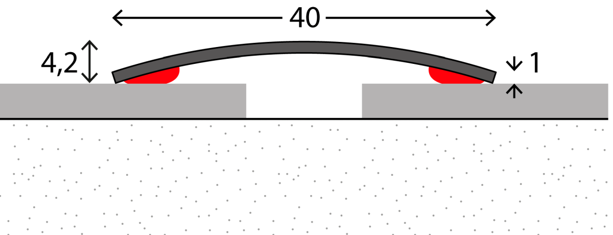 Mit dem Anpassungsprofil 40 mm selbstklebend in Edelstahl matt schaffen Sie saubere Übergänge auch bei einem Höhenunterschied bis zu 14mm.