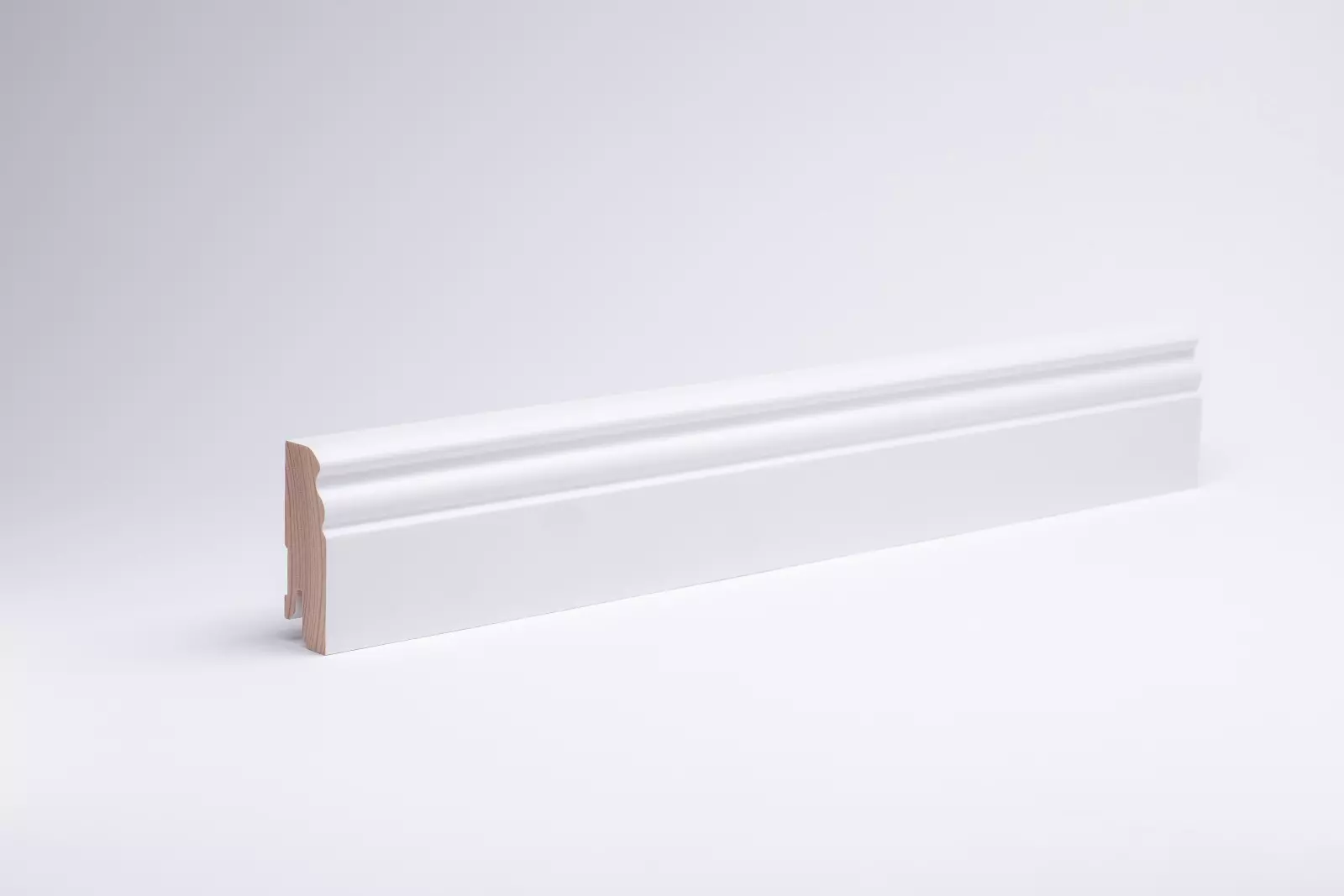 Massivholz-Sockelleiste Berliner Profil 60 mm - Weiß RAL 9016