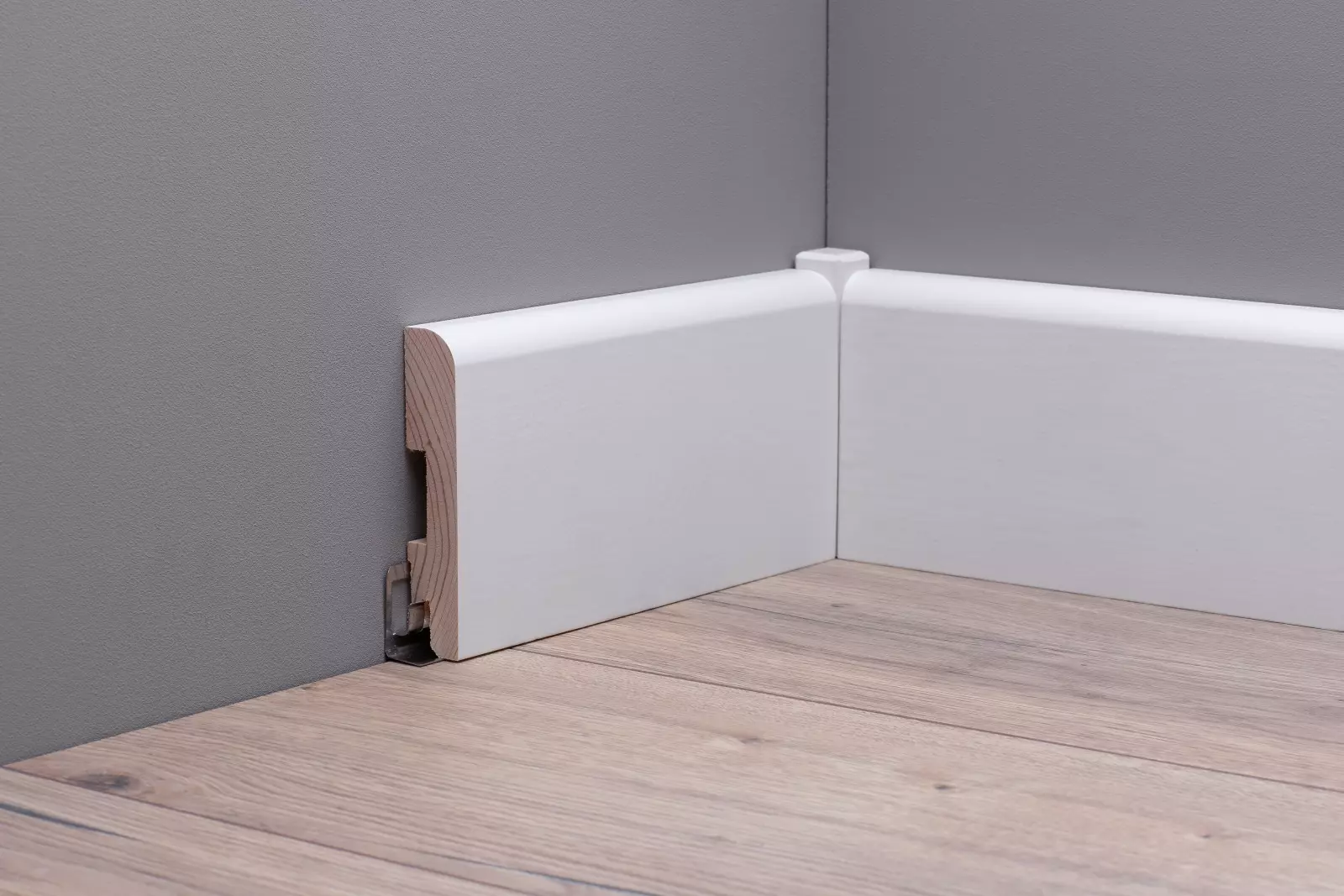 Durch das praktische ClipSystem lassen sich die Sockelleisten schnell und einfach an der Wand montieren.