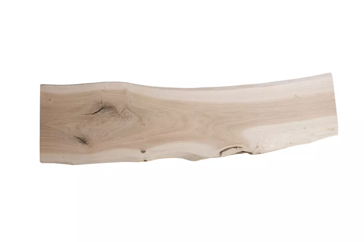 Durch die natürlich geschwungenen Baumkanten, kann die Gesamtbreite des Eichenbrettes um +/- 3 cm abweichen. Ebenso kann die Stärke minimal abweichen.