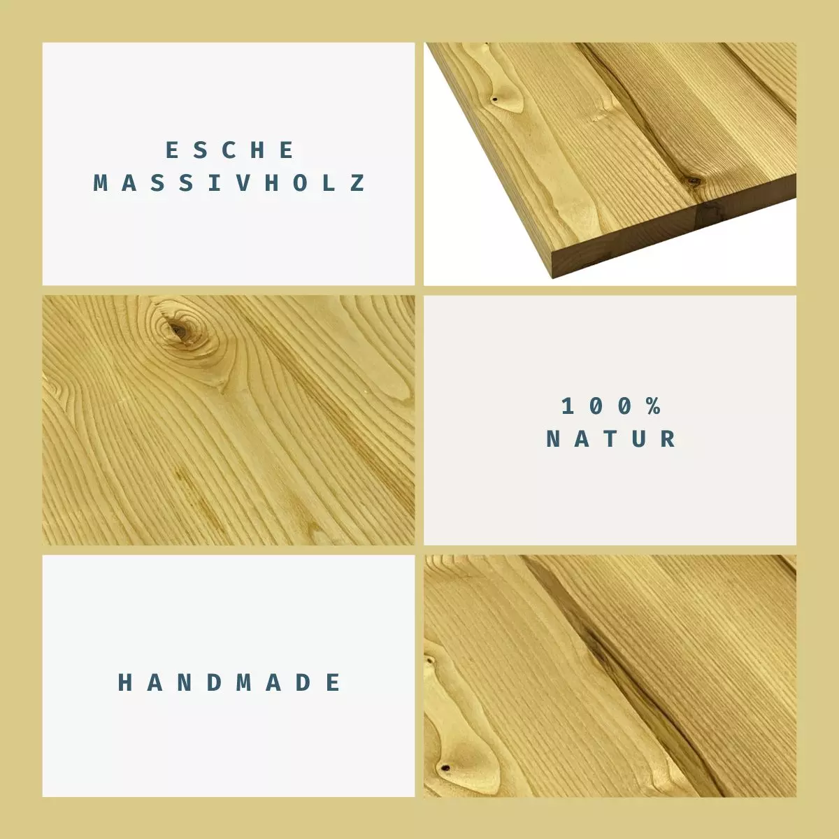 Wählen Sie aus einer Vielzahl hochwertiger Holzarten wie Eiche, Esche, Ahorn, Nussbaum und Kirschbaum. Jede Platte wird individuell für Sie gefertigt und überzeugt durch höchste Qualität und präzise Verarbeitung. Dank flexibler Anpassungsmöglichkeiten erhalten Sie das perfekte Produkt für Ihre Projekte.