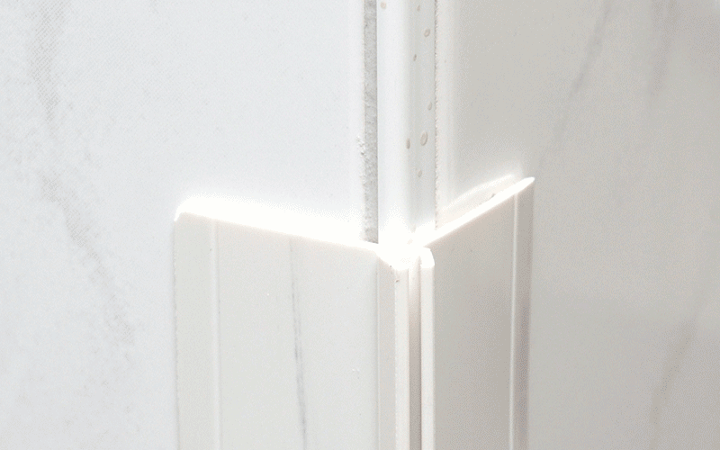 Mit modularen Wandbelägen eröffnen sich ganz neue Möglichkeiten für die kreative Wandgestaltung ob im Neubau oder in der Renovierung. So lassen sich Bäder im Handumdrehen umgestalten, ohne dass vorhandene keramische Fliesen entfernt werden müssen. Derartige Wandelemente bestehen aus den verschiedensten Materialien: Alu-Verbundplatten, Kunstharz, Ceramin, Mineralfaser, HPL oder MDF. Beim Zuschneiden der Platten entstehen je nach Material scharfe Kanten oder kleine Abplatzungen. Profile decken die Schnittkanten sauber ab, schützen vor Feuchtigkeit und setzen optische Akzente. Ebenso vielfältig wie die Materialien sind die Belagstärken. Das Prinz MuraTec Profilsystem ist konstruiert für Beläge von 3 9 mm Stärke. Es besteht aus einem Kunststoff-Unterprofil und darauf abgestimmten Aluminium-Oberprofilen. Zunächst wird das Unterprofil auf der Wand verklebt und die Dekorplatte verarbeitet. Das Oberprofil wird zum Schluss aufgesetzt, rastet im Unterprofil ein und passt sich automatisch der jeweiligen Plattenstärke an. MuraTec bietet für Handel und Handwerk mit nur zwei Profilhöhen immer das passgenaue Profil für eine Vielzahl an Anbietern und Wandbelägen.