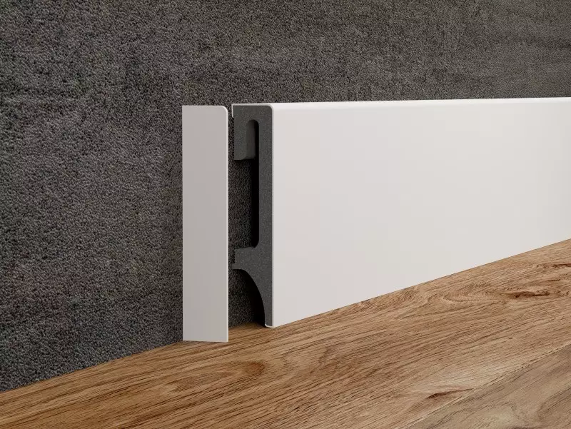 - Kunststoffsockelleiste aus Polymermaterialien in Hellgrau