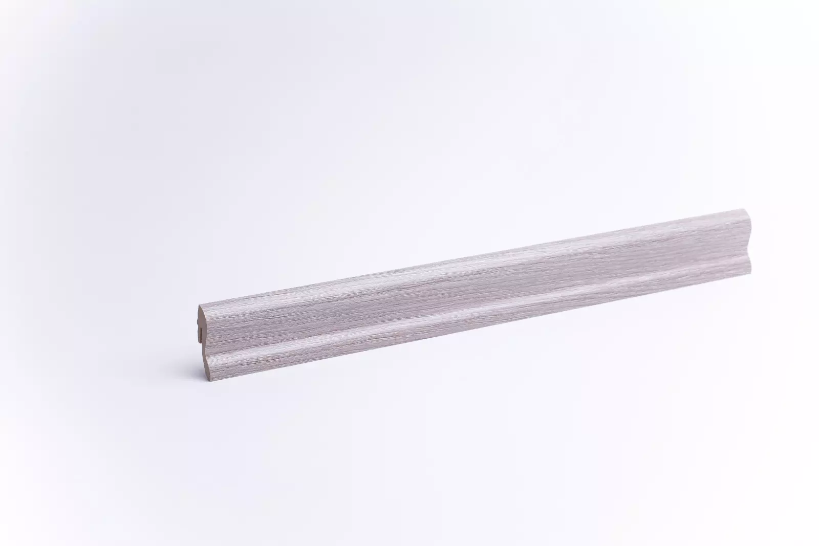 Unsere Sockelleisten 40 mm mit Holzoptik Eiche weiß, im geschwungenen und modernen Design, verschönern jeden Raum.