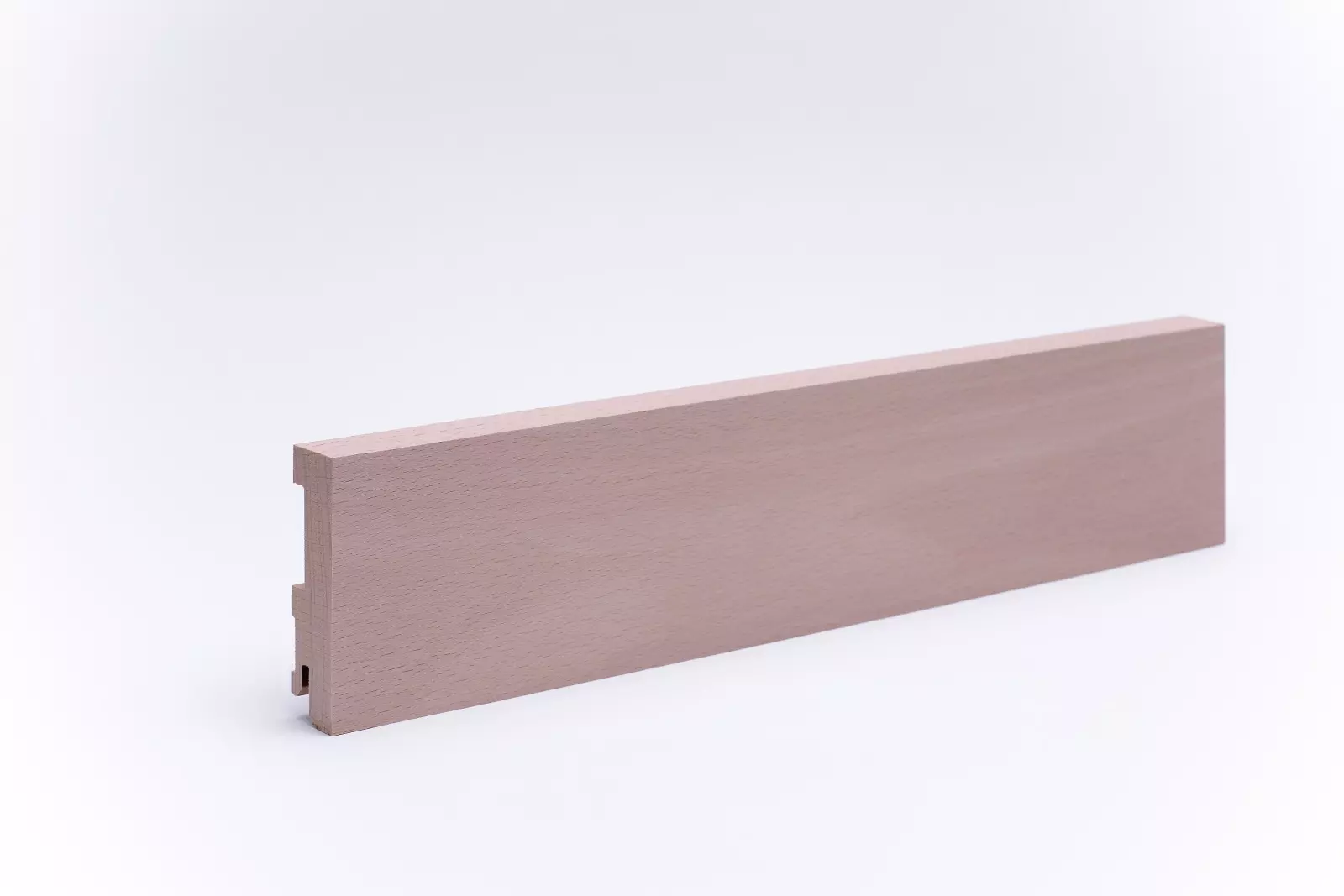 80mm hohe Rechteck-Sockelleiste aus massivem Buchenholz. Gehobelt und geschliffen. Die Leisten werden aus einem Stück, wie der Stamm gewachsen ist, gearbeitet. Asteinschlüsse sind möglich.