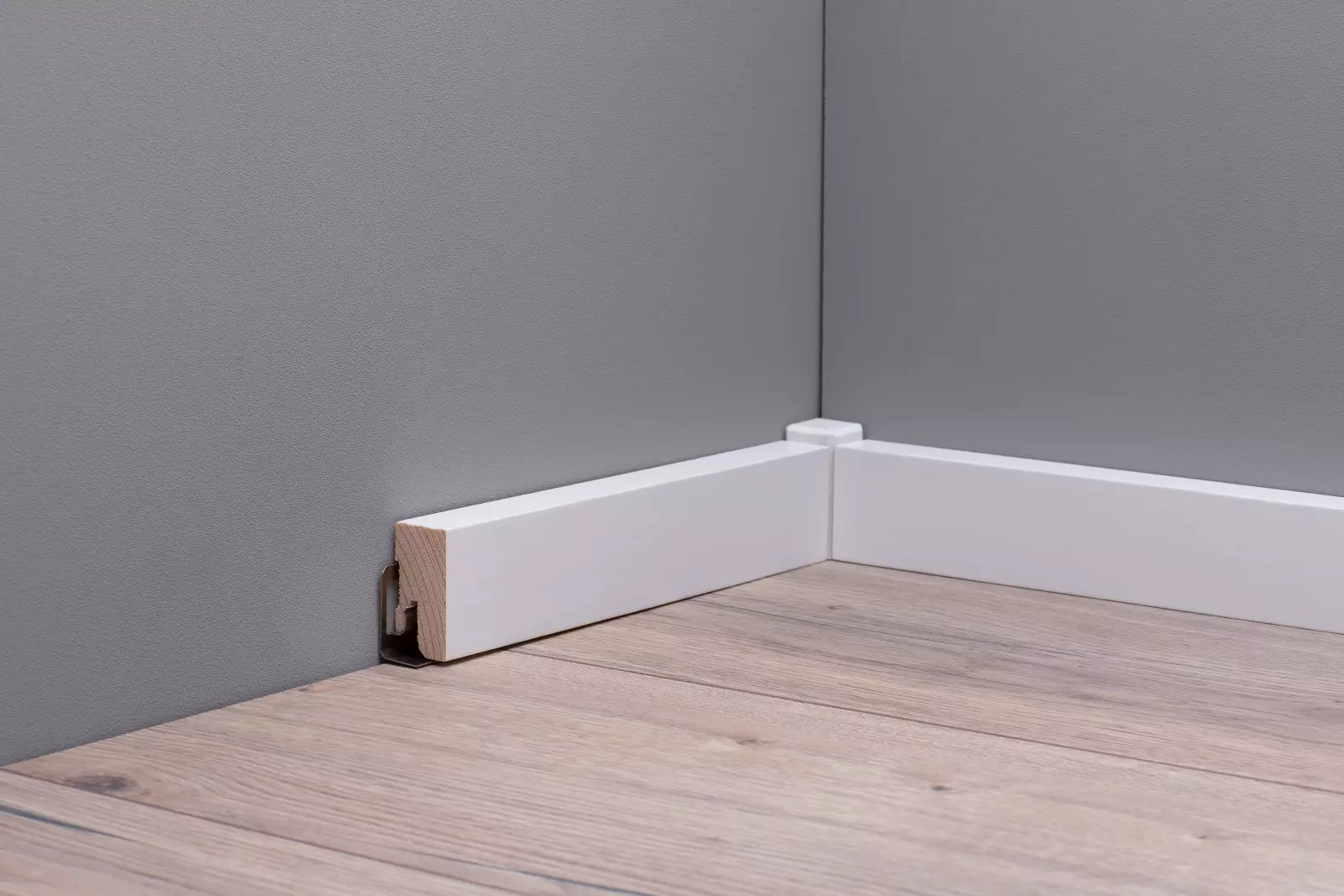 Durch das praktische ClipSystem lassen sich die Sockelleisten schnell und einfach an der Wand montieren.