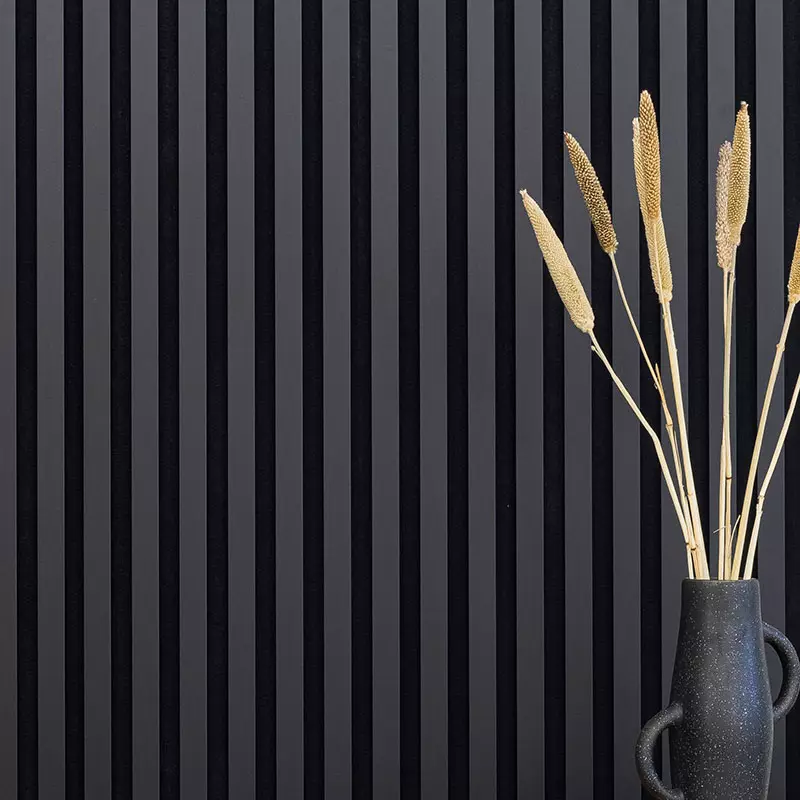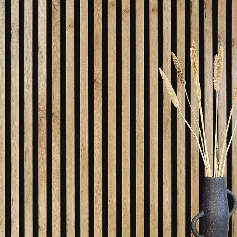 Lamellenleisten sind das Gegenstück zu unseren vorgefertigten Akustikpaneelen, die Sie als komplette Einheit direkt in Ihr Wohnzimmer oder Ihre Küche integrieren können. Bei Wandlamellen handelt es sich um die einzelnen Leisten, die normalerweise auf Wandpaneelen oder individuell zu einer Lamellenwand montiert werden. Einzeln verwendet haben einen wesentlichen Vorteil: Sie sind in der optischen Gestaltung des Raums völlig frei und nicht an ein bestimmtes Maß gebunden. So passen Sie Ihre Lamellenleisten im Wohnzimmer perfekt an die vorhandenen Möbel und Farben an und unterstreichen den Charakter der Einrichtung.