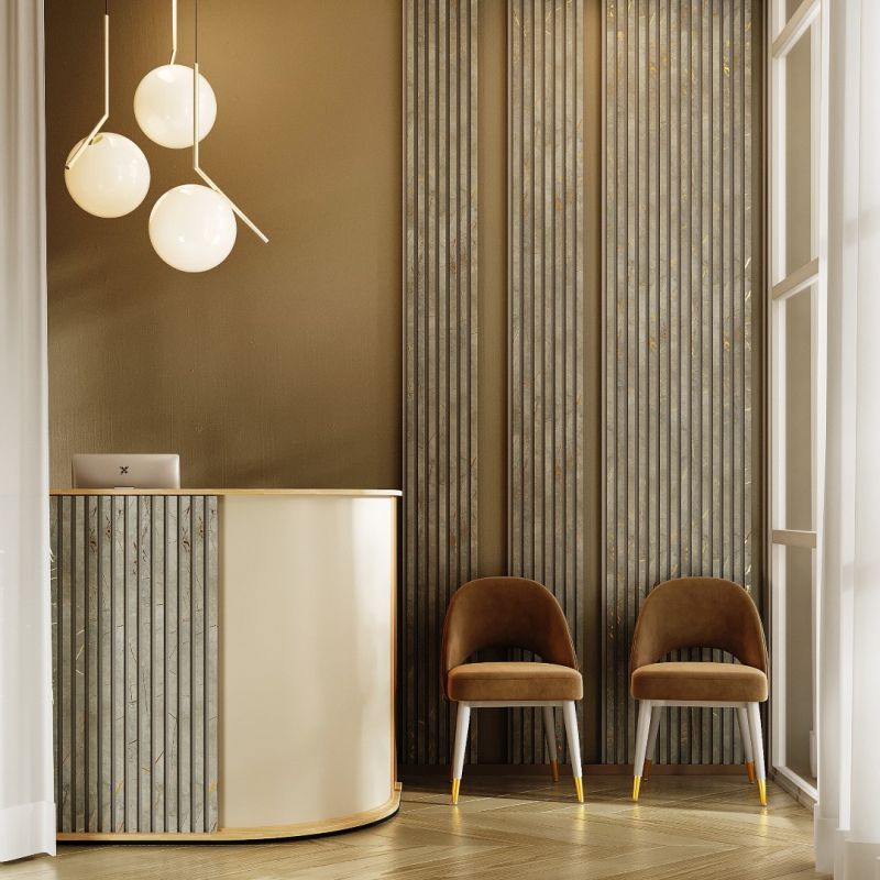 - Aspecto moderno de pared de lamas para mayor profundidad y estructura