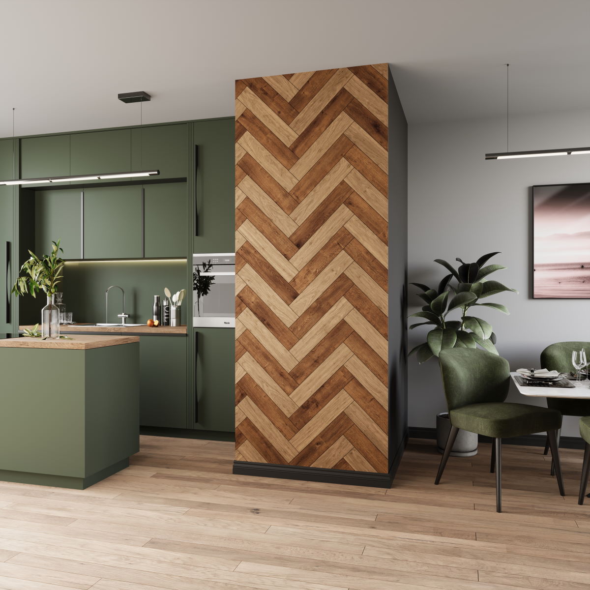 Ya sea como pared decorativa en el salón, como detalle elegante en el dormitorio o como revestimiento moderno en el pasillo, el revestimiento de pared FLEX crea un ambiente cálido y acogedor.