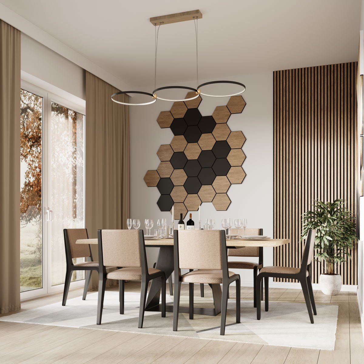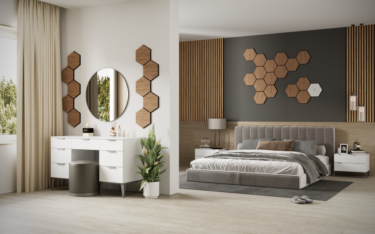 ¡Lleve a su hogar un estilo único y una acústica mejorada! El revestimiento de pared hexagonal NANO en roble rústico combina la elegante decoración de madera MDF con fieltro negro y aporta un toque moderno a cualquier estancia.