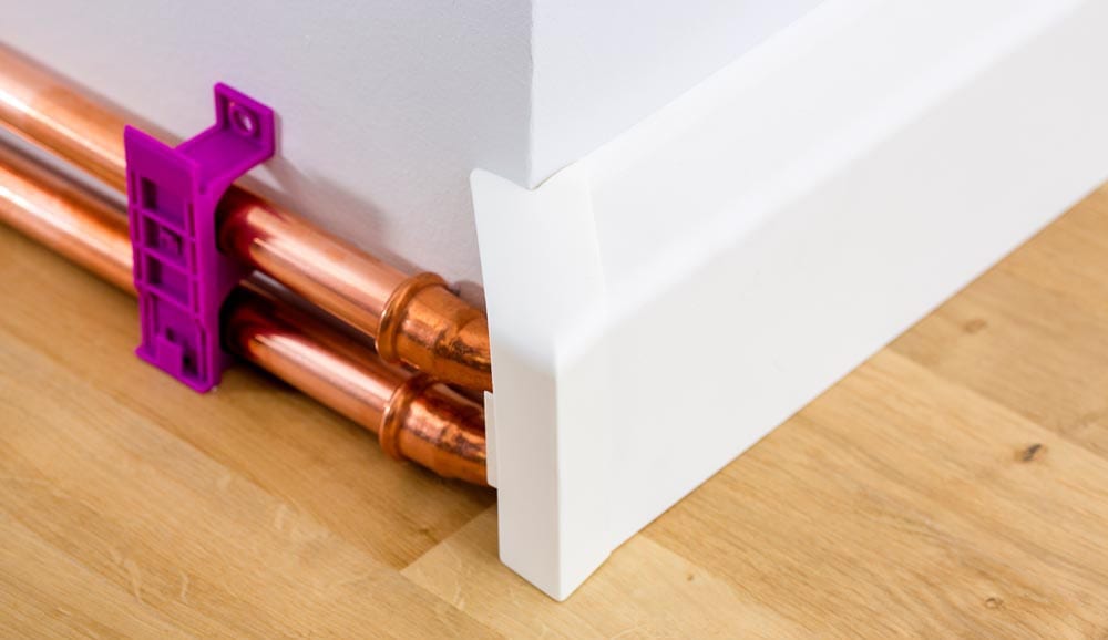 Clip de fixation en plastique pour habillage de tuyaux de chauffage 90 x 40 x 2.500 mm.