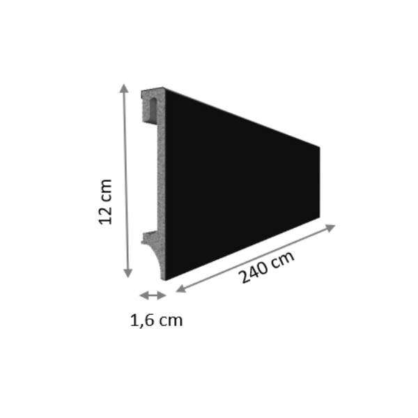 Les plinthes Espumo ESP506 - 120 mm noir Pour l'environnement, 80% de matériaux recyclésLa plinthe Espumo extrêmement robuste et de grande qualité est fabriquée avec une technologie Kerracore spécialement développée à cet effet. La plinthe est composée d'un matériau polymère affiné avec des additifs minéraux. Une couche couche intérieure légère et expansée et la couche extérieure dure rendent la plinthe résistante à l'humidité et aux chocs, ce qui permet de l'utiliser presque partout. Le matériau dans lequel la plinthe Espumo est fabriquée n'absorbe pas l'humidité de la pièce. de la pièce, des murs ou des sols. Elle ne se déforme donc pas et est également idéale pour les nouvelles constructions où les murs dégagent encore de l'humidité pendant un certain temps. Le montage de la plinthe Espumo est particulièrement rapide et simple, car elle est fixée au mur uniquement avec de la colle de montage. Grâce à un guidage de câbles caché, il est en outre possible de faire disparaître les câbles gênants.Aperçu des données :Plinthe en matériaux polymères noir Fabriqué à partir de 80% de matériaux recyclés Dimensions : 120 x 16 x 2400 mm Résistant à l'eau et à l'humidité Canal de câbles intégré Montage : collage