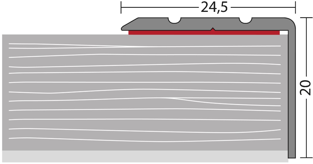 Profil de nez de marche 45 x 10 mm - ArgentProfil de nez de marche pour revêtements design jusqu'à 2,5 mm, pour la pose de revêtements design sur toute la surface des marches d'escalier. Les profilés adaptés protègent les bords du revêtement.Caractéristiques techniquesProfilé en aluminium, revêtu par poudre noirDimensions 45 x 10 x 2.500 mmPour revêtements de sol design / LVT, revêtements de sol élastiques jusqu'à 2,5 mmtrous de vis encastrés