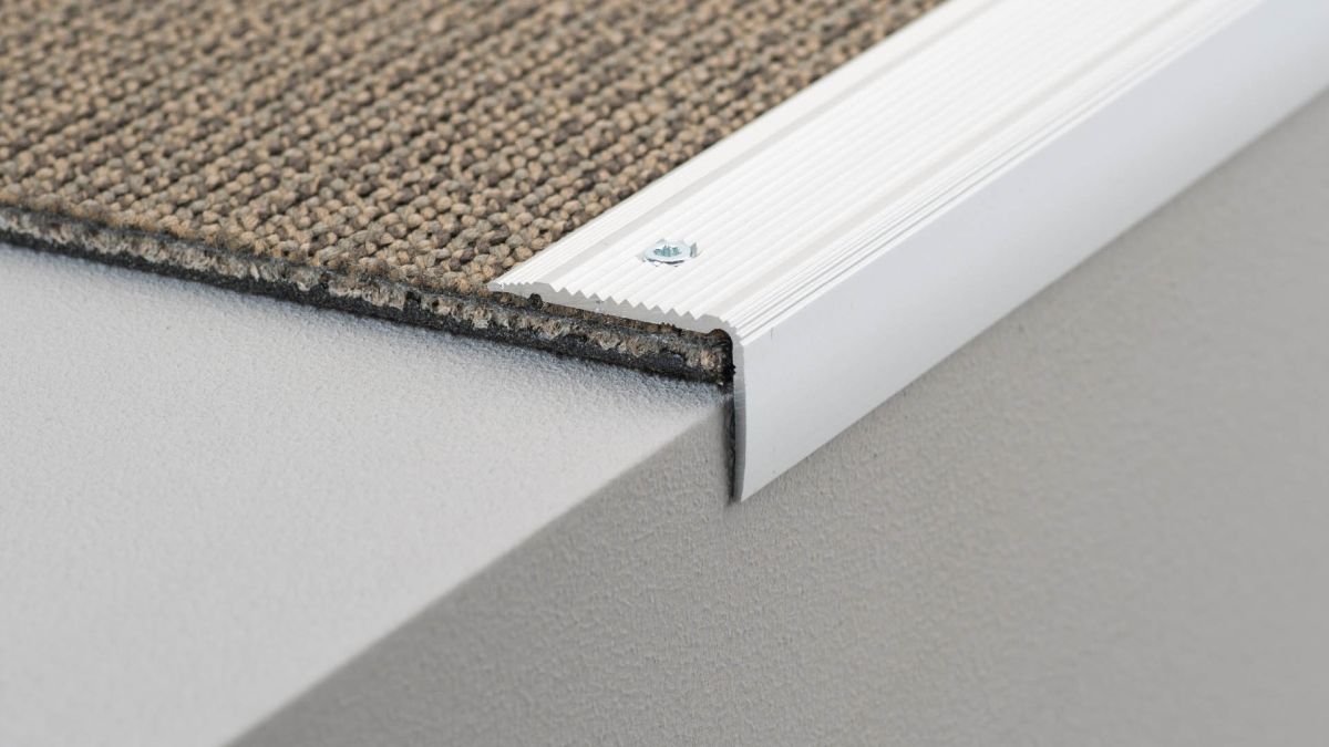 Le profilé nez de marche 30 x 20 mm protège de manière fiable les bords du revêtement de sol sur un bord de marche. La surface rainurée augmente également la sécurité sur le bord de la marche.