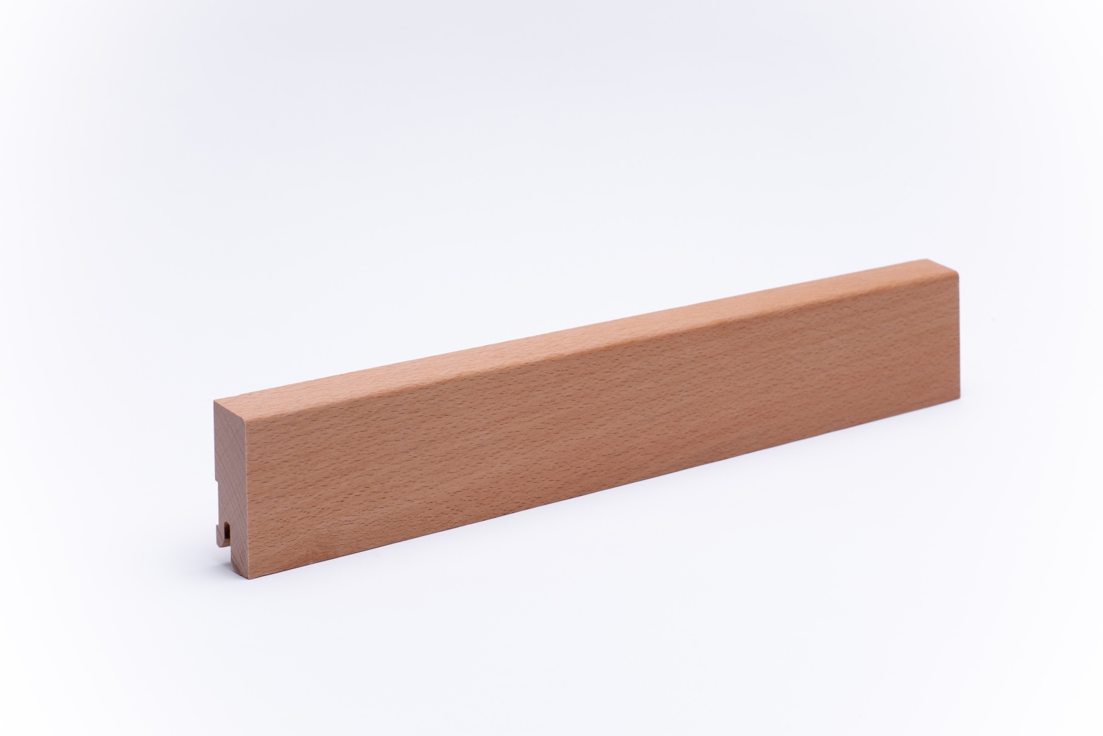 Plinthes en bois massiv avec à bord biseauté dans les dimensions 60 mm x 20 mm x 2.400 mm. Les plinthes sont faites d'une pièce, avec la structure naturelle du tronc d'arbre. Ceci crée une image harmonieuse dans la structure de la couleur et du bois.