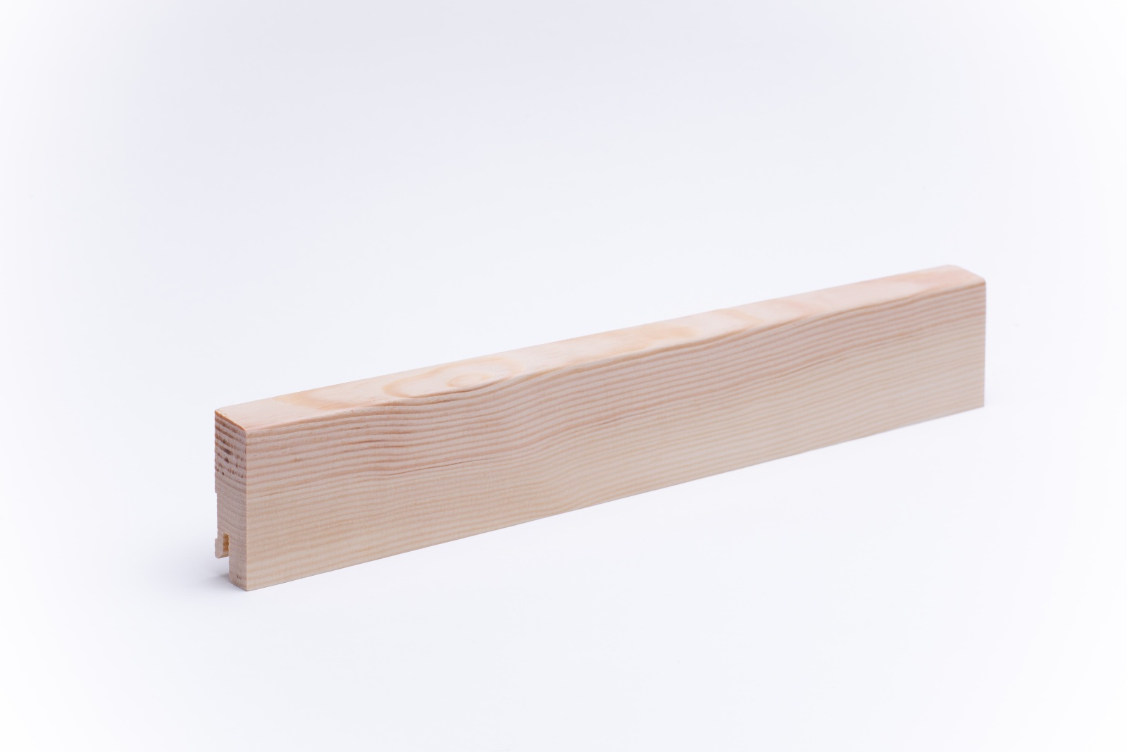 Plinthes en bois massiv avec à bord biseauté dans les dimensions 60 mm x 20 mm x 2.400 mm. Les plinthes sont faites d'une pièce, avec la structure naturelle du tronc d'arbre. Ceci crée une image harmonieuse dans la structure de la couleur et du bois.
