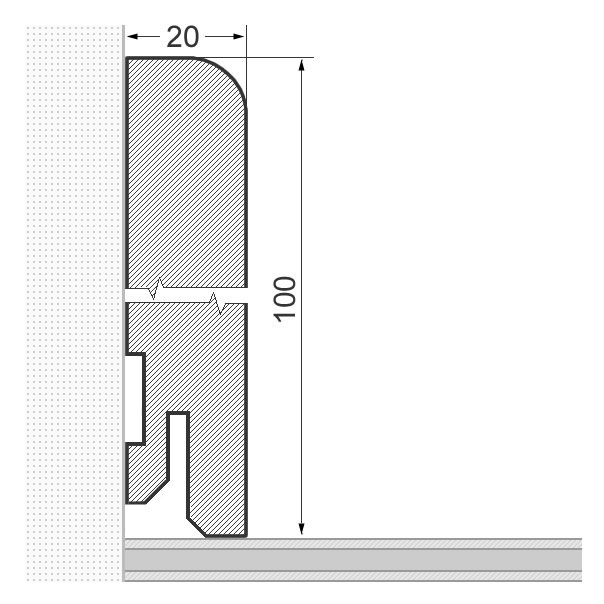 Plinthes en bois massiv dans les dimensions 100 mm x 20 mm x 2.400 mm. Les plinthes sont faites d'une pièce, avec la structure naturelle du tronc d'arbre. Ceci crée une image harmonieuse dans la structure de la couleur et du bois.