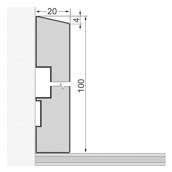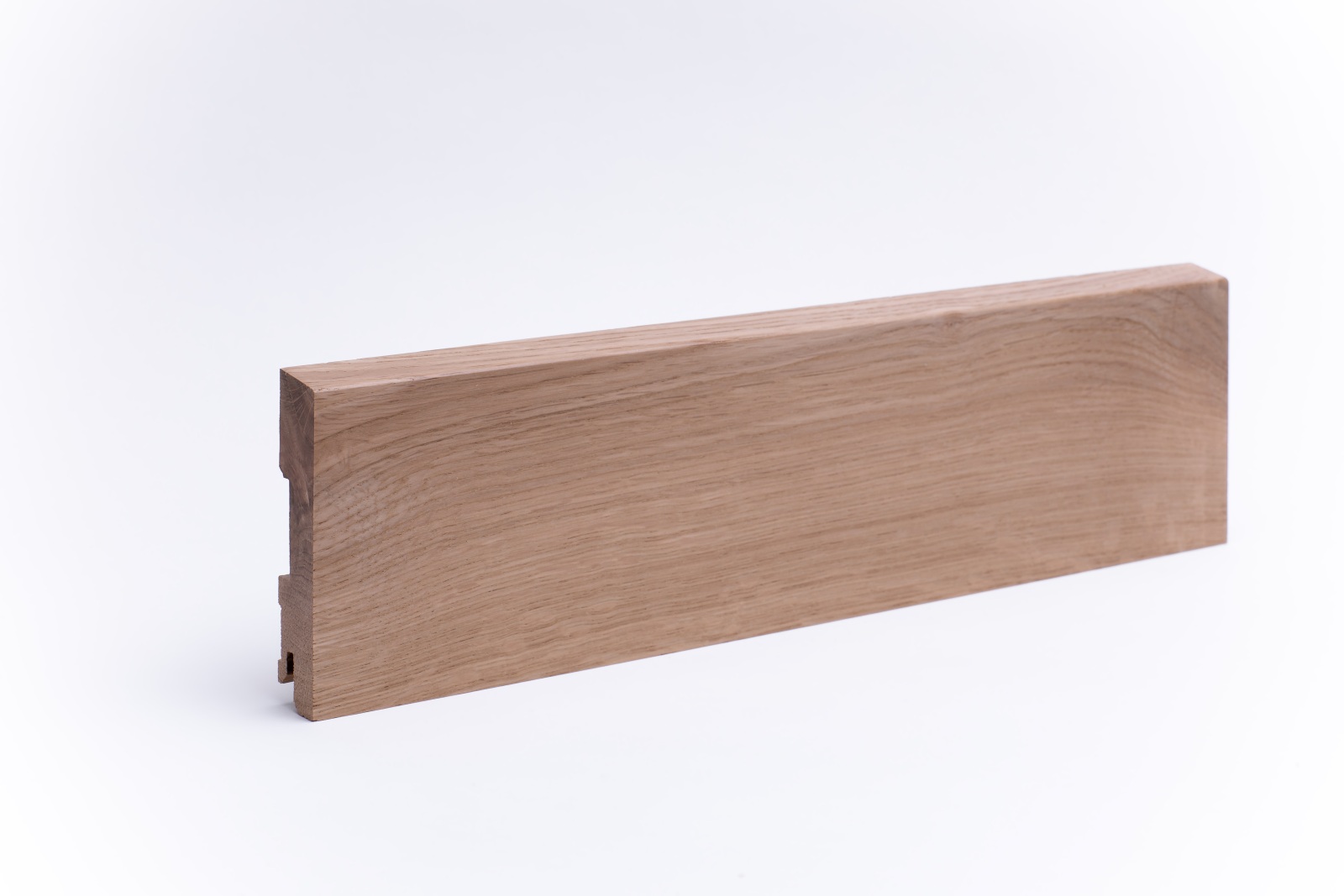 Plinthes en bois massiv avec à bord biseauté dans les dimensions 100 mm x 20 mm x 2.400 mm. Les plinthes sont faites d'une pièce, avec la structure naturelle du tronc d'arbre. Ceci crée une image harmonieuse dans la structure de la couleur et du bois.