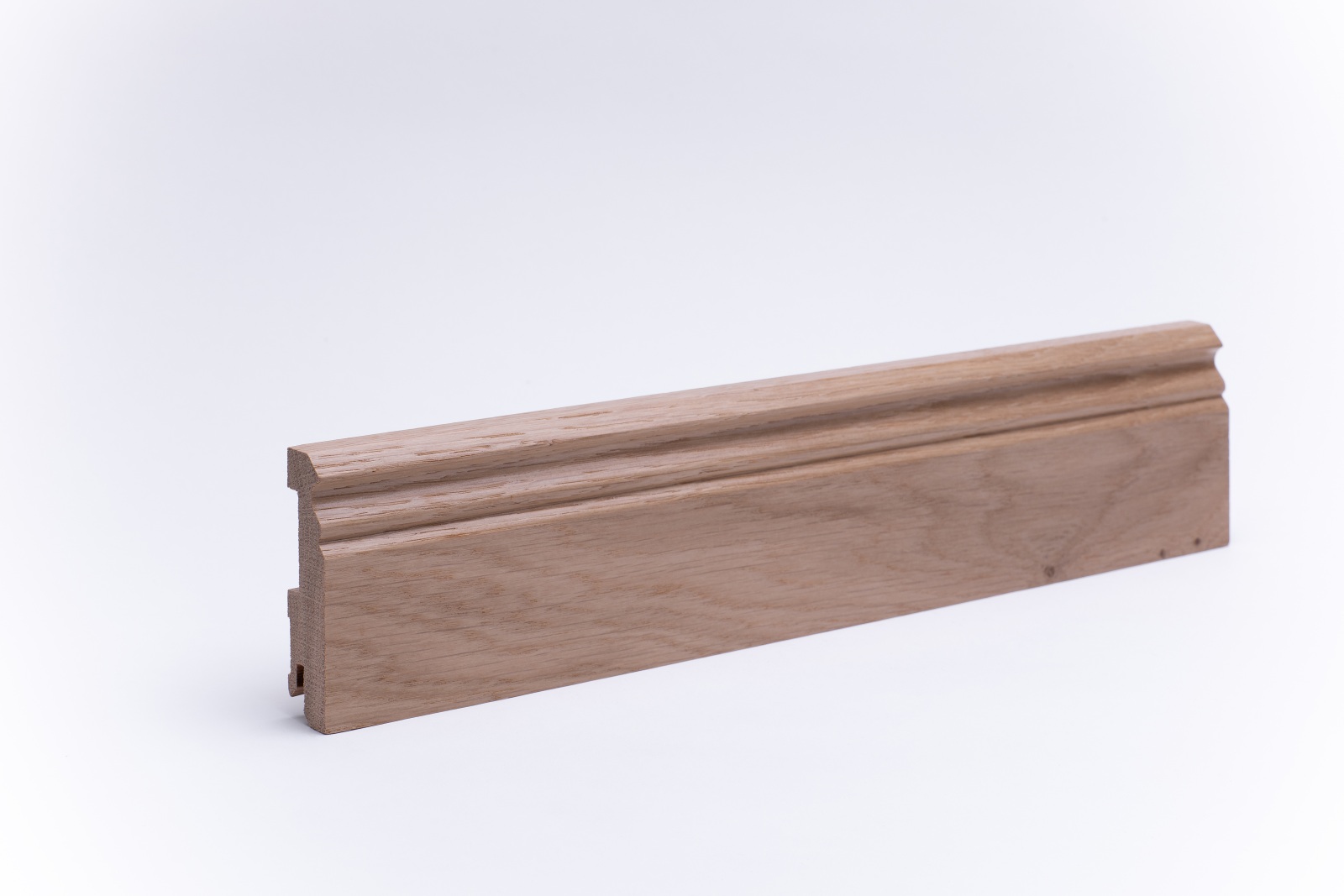 Plinthes en bois massiv avec profil Berlin dans les dimensions 80 mm x 20 mm x 2.400 mm. Les plinthes sont faites d'une pièce, avec la structure naturelle du tronc d'arbre. Ceci crée une image harmonieuse dans la structure de la couleur et du bois.