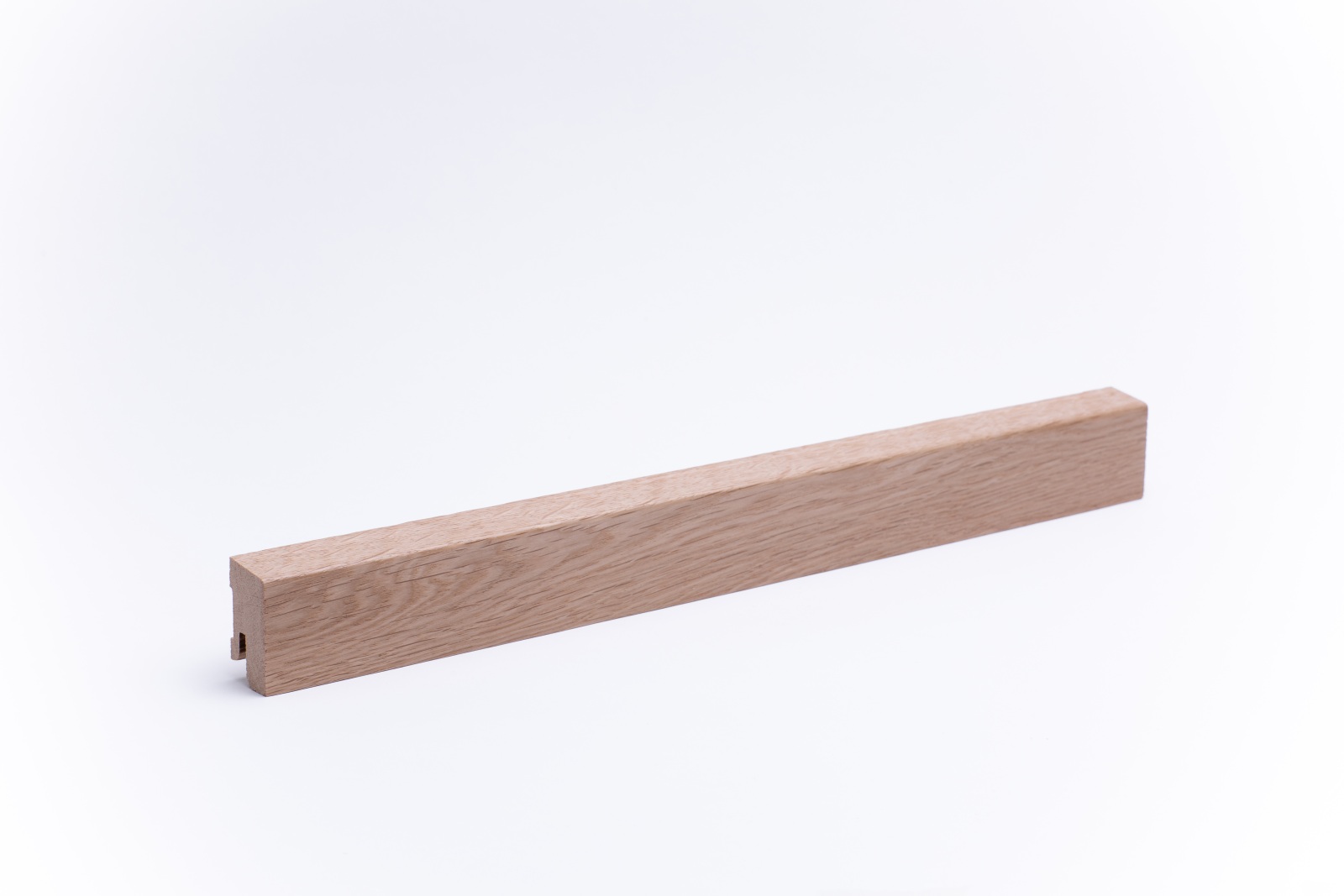 Plinthes en bois massiv avec à bord biseauté dans les dimensions 40 mm x 20 mm x 1.000 - 2.400 mm. Les plinthes sont faites d'une pièce, avec la structure naturelle du tronc d'arbre. Ceci crée une image harmonieuse dans la structure de la couleur et du bois.