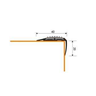 Profilé pour marches d'escalier 40 x 20 x 2 700 mm en aluminium avec insert en caoutchouc gris. Les inserts en caoutchouc rainurés servent de protection antidérapante et augmentent la sécurité sur le bord des marches.