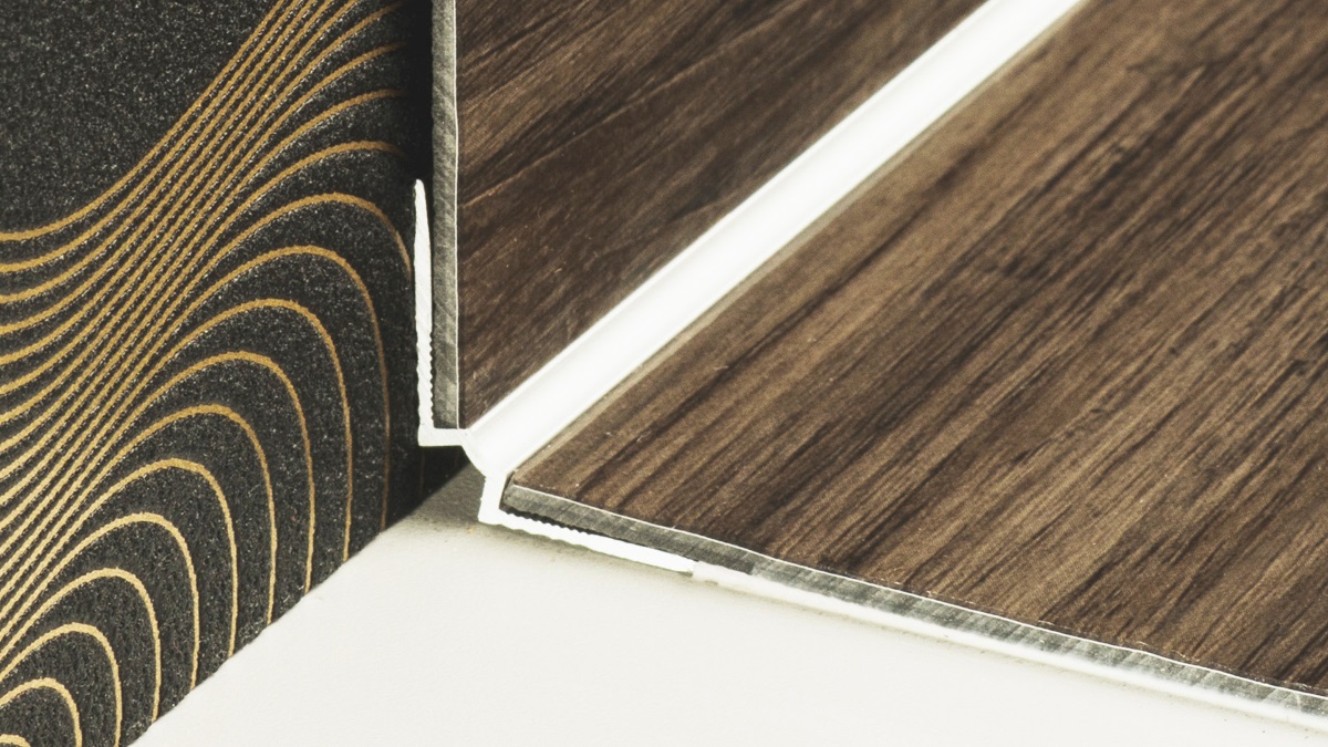 Nez de marche pour revêtement design jusqu'à 3 mm, pour la pose en pleine surface de revêtement design sur les marches. Les angles intérieurs assortis protègent également les bords du revêtement dans l'angle intérieur entre la marche et la contremarche.