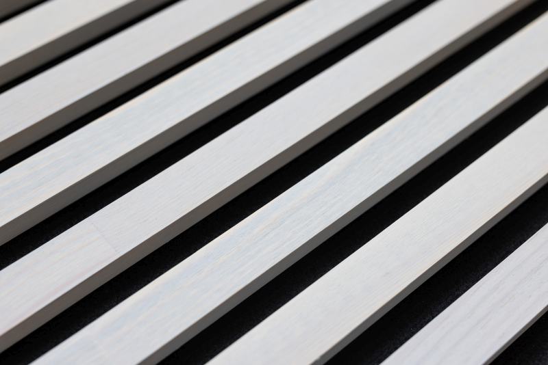 Lamelle - Revêtement mural - Panneau acoustique en bois massif 2600 x 400 mm Pin POLAR White- Feutre acoustique noir