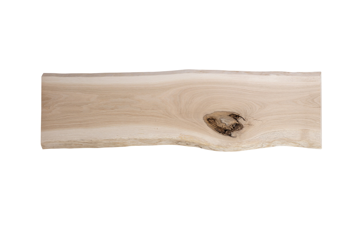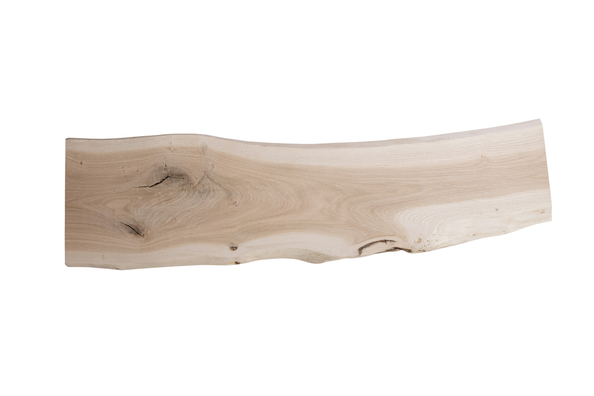 La planche de chêne, le madrier de chêne, la rondelle d'arbre, le panneau en bois massif de chêne avec chant en forme d'arbre - Naturel - Durable - Caractère Chaque pièce est unique Nos plateaux en chêne avec chant en forme d'arbre des deux côtés sont fabriqués à la main avec amour, à partir de bois massif de qualité supérieure. Il s'agit d'un produit purement naturel, que nous fabriquons à partir d'un seul morceau de chêne massif - comme le tronc a grandi. Ainsi, chaque pièce possède son caractère individuel et son charme rustique. Les propriétés typiques du bois de chêne sont ainsi conservées:Chants d'arbre naturellement courbés aubier clair sur la zone des chants bois de cur clair à brun foncé Une veinure et un comportement de couleur uniques bois et nuds caractéristiques Dimensions : longueur : au choix / épaisseur : env. 4 cm / profondeur : 35-40 cm Traitement de surface : au choix brut, huilé ou verni. Selon la façon dont le tronc a poussé, la largeur peut être comprise entre 35 et 40 cm. En raison de la courbure naturelle des bords de l'arbre, la largeur totale de la planche de chêne peut varier de +/- 3 cm. De même, l'épaisseur peut varier légèrement. Matériau :Le chêne est un bois très stable, avec une surface dure et une longue durabilité. Il convient donc parfaitement aux applications les plus diverses en intérieur et en extérieur. Chaque pièce a son aspect individuel. Grâce aux veines vives, aux fissures et aux nuds, vous obtenez un produit à l'aspect rustique et authentique.Le bois de chêne est séché techniquement à environ 8-12% et donc exempt de vermine et de parasites. Les panneaux de bois massif sont dressés sur une face. Le côté de l'arête de l'arbre qui dépasse vers le bas est raboté et poncé. Les chants d'arbre sont écorcés et sur-poncés.Domaine d'utilisation:Excellente utilisation à l'intérieur et à l'extérieur. Mieux adapté aux projets DIY créatifs comme les meubles, les plans de travail, la décoration murale, les penderies, etc. Traitement / manipulation :Le bois dur se travaille facilement et proprement avec des outils classiques.Le traitement de surface choisi :Surface brute: Vous pouvez affiner la surface non traitée ultérieurement, par teinture, huile, lasure ou vernis, selon vos souhaits. Surface huilée: Un traitement avec l'huile pour bois intensifie le ton naturel du chêne, la surface paraît plus chaude. L'huile protège en outre le bois, ce qui le rend plus résistant à la poussière, à la saleté et à l'humidité. Le bois conserve ainsi son caractère naturel et reste respirant. La structure et les veines naturelles du bois sont ainsi particulièrement mises en valeur. Surface vernie: Un vernis supplémentaire sur la surface, offre une protection optimale contre la poussière, l'humidité et les rayons du soleil. La structure naturelle et le veinage du chêne sont alors entièrement préservés.