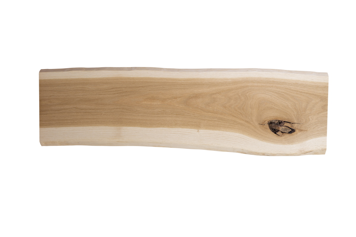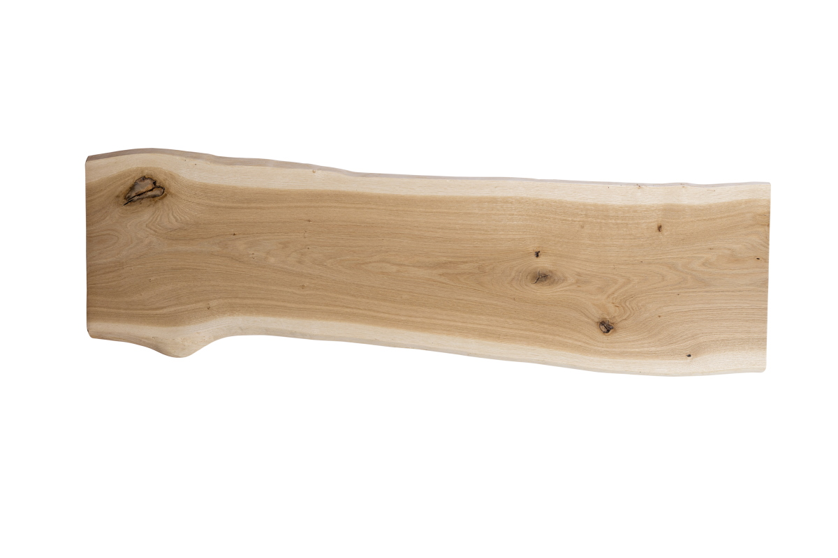 La planche de chêne, le madrier de chêne, la tranche d'arbre, le panneau en bois massif de chêne collé avec chant en forme d'arbre - Naturel - Durable - Caractère Chaque pièce est unique Nos plateaux en chêne avec chant en forme d'arbre des deux côtés sont fabriqués à la main avec amour, à partir de bois massif de qualité supérieure. Pour obtenir la largeur souhaitée, la planche de chêne est collée individuellement à partir de lamelles continues. Il s'agit d'un produit purement naturel, que nous fabriquons en chêne massif. Ainsi, chaque pièce possède son caractère individuel et son charme rustique. Les propriétés typiques du chêne sont ainsi conservées :Chants d'arbre naturellement courbés aubier clair sur la zone des chants bois de cur clair à brun foncé Une veinure et un comportement de couleur uniques bois et nuds caractéristiques Dimensions : longueur : au choix / épaisseur : env. 22 mm / profondeur : au choix Traitement de surface : au choix brut, huilé ou verni. En raison des arêtes naturellement courbées des arbres, la largeur totale de la planche de chêne peut varier de +/- 3 cm. De même, l'épaisseur peut varier légèrement. Matériau :Le chêne est un bois très stable, avec une surface dure et une longue durabilité. Il convient donc parfaitement aux applications les plus diverses en intérieur et en extérieur. Chaque pièce a son aspect individuel. Grâce aux veines vives, aux fissures et aux nuds, vous obtenez un produit à l'aspect rustique et authentique.Le bois de chêne est séché techniquement à environ 8-12% et donc exempt de vermine et de parasites. Les panneaux de bois massif sont dressés sur une face. Le côté de l'arête de l'arbre qui dépasse vers le bas est raboté et poncé. Les chants d'arbres sont écorcés et sur-poncés.Domaine d'utilisation:Excellente utilisation à l'intérieur et à l'extérieur. Mieux adapté aux projets DIY créatifs comme les meubles, les plans de travail, la décoration murale, les penderies, etc. Traitement / manipulation :Le bois dur se travaille facilement et proprement avec des outils classiques.Le traitement de surface choisi :Surface brute: Vous pouvez affiner la surface non traitée ultérieurement, par teinture, huile, lasure ou vernis, selon vos souhaits. Surface huilée: Un traitement avec l'huile pour bois intensifie le ton naturel du chêne, la surface paraît plus chaude. L'huile protège en outre le bois, ce qui le rend plus résistant à la poussière, à la saleté et à l'humidité. Le bois conserve ainsi son caractère naturel et reste respirant. La structure et les veines naturelles du bois sont ainsi particulièrement mises en valeur. Surface vernie: Un vernis supplémentaire sur la surface, offre une protection optimale contre la poussière, l'humidité et les rayons du soleil. La structure naturelle et le veinage du chêne sont alors entièrement préservés.