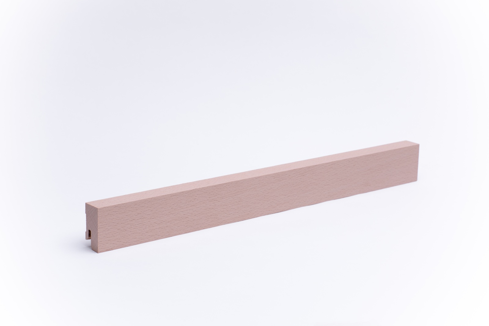 Plinthe rectangulaire de 40 mm de hauteur en bois de hêtre massif avec surface vernie . Les plinthes sont fabriquées à partir d'un seul morceau, tel que le tronc a poussé. Des nuds sont possibles.