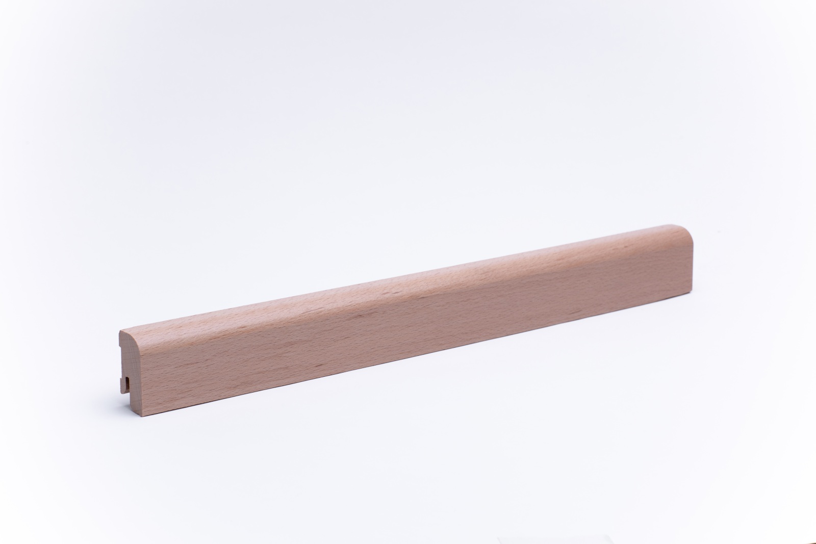 Plinthe de 40 mm de haut en bois de hêtre massif avec bord avant arrondi et surface vernie . Les plinthes sont fabriquées d'une seule pièce, comme le tronc a poussé. Des raccords de pierre sont possibles.
