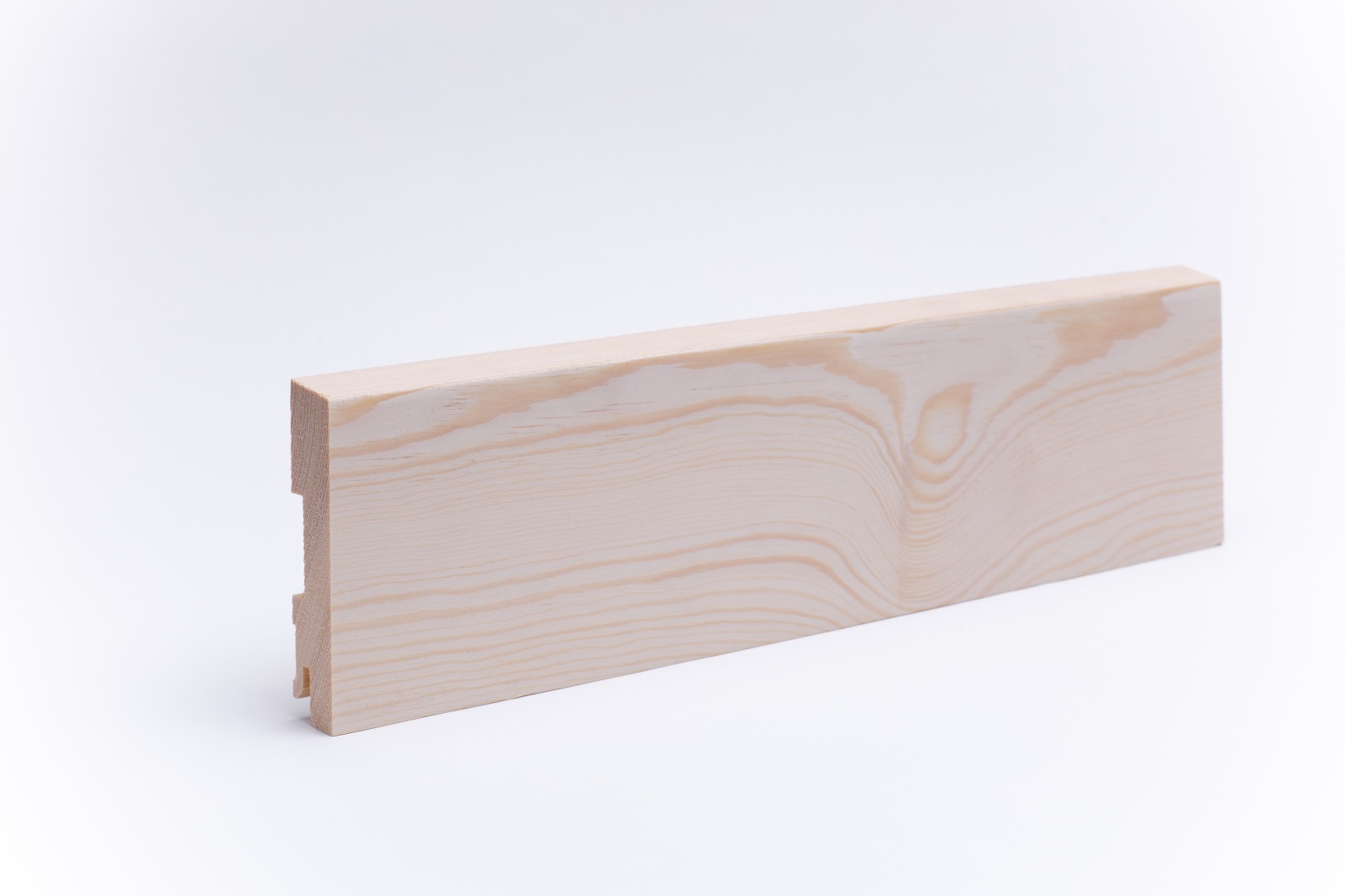 Plinthes en bois massiv avec à bord biseauté dans les dimensions 100 mm x 20 mm x 1.000 - 2.400 mm. Les plinthes sont faites d'une pièce, avec la structure naturelle du tronc d'arbre. Ceci crée une image harmonieuse dans la structure de la couleur et du bois.