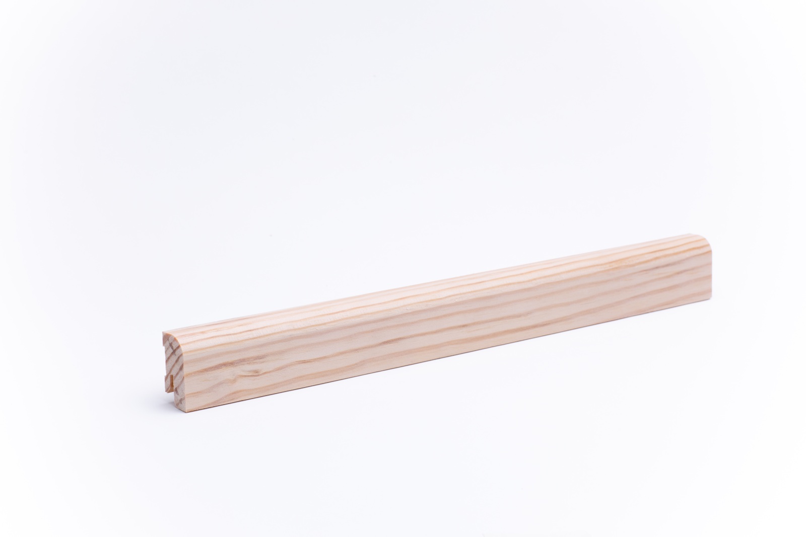 Plinthe de 40 mm de haut en pin massif avec bord avant arrondi. Rabotée et poncée. Les plinthes sont travaillées d'une seule pièce, comme le tronc a poussé. Il en résulte une image harmonieuse de la structure du bois et de la couleur. Des raccords en pierre sont possibles.