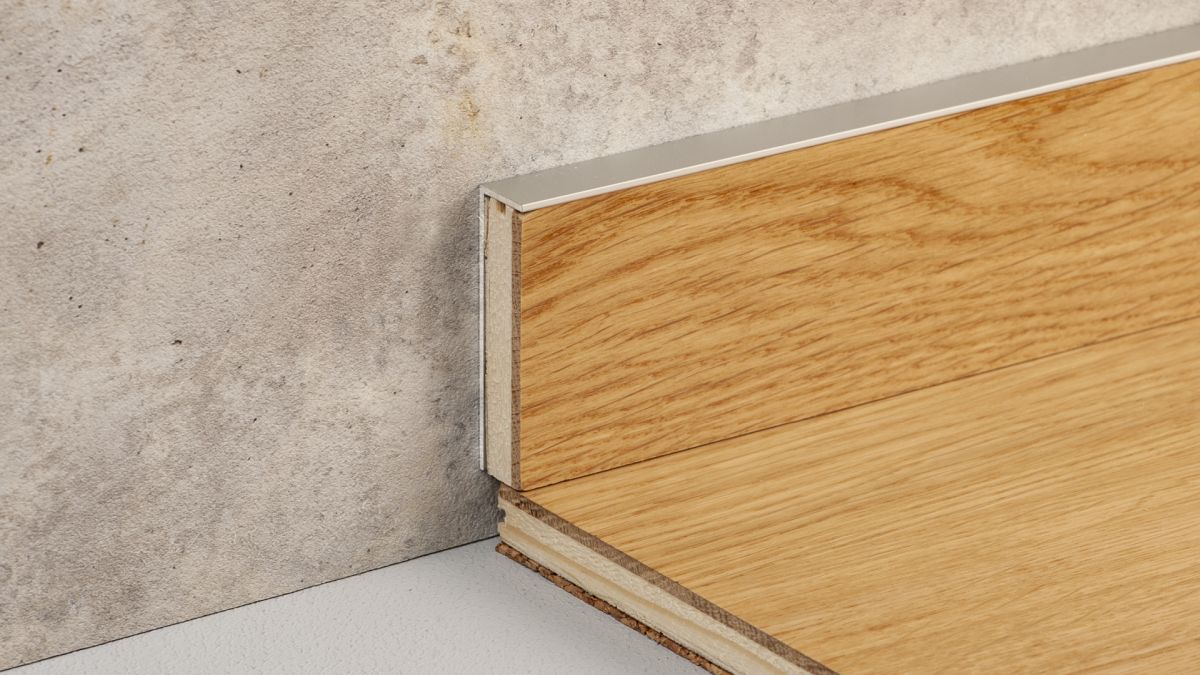 La bande est proche du mur et convainc par une surface en aluminium impeccable. Montés avec le pied court vers le haut, ils sont utilisés pour réaliser des bandes collées discrètes pour les revêtements de sol d'une épaisseur allant jusqu'à 13 mm. De cette manière, les plinthes peuvent être fabriquées à partir du revêtement de sol traité avec un décor identique et un surplus de matière peuvent être utilisés efficacement.