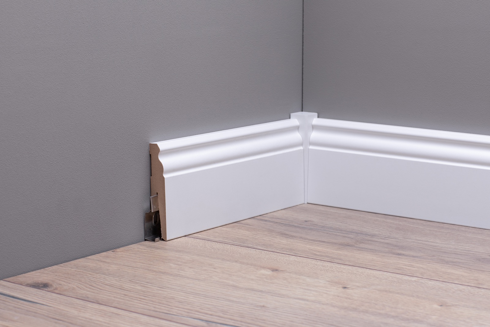 Notre plinthe blanche avec un élégant profil Berlin , également connu sous le nom de profil Hambourg , embellit chaque pièce avec son style classique et intemporel.
