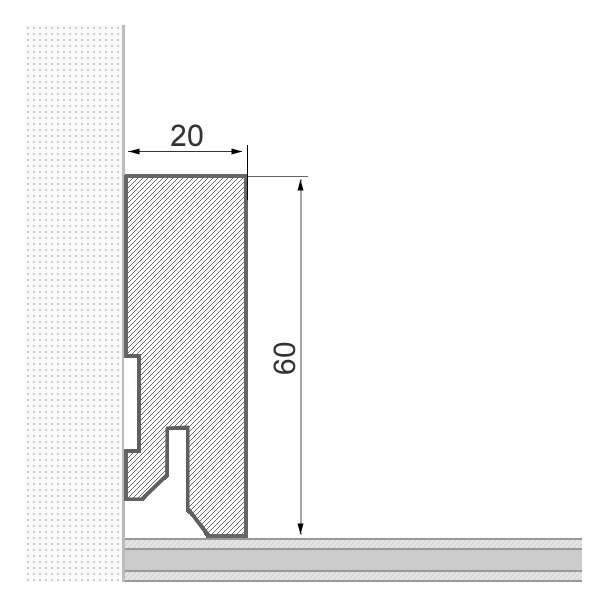 Plinthe blanche 60 mm RAL9016 profil berlinois - intemporelle, moderne et styléeNos plinthes blanches sont le classique absolu - intemporelles, stylées et magnifiques - elles s'adaptent simplement à tous les sols et styles d'aménagement.Ces plinthes sont fabriquées en bois massif de qualité supérieure, avec une surface laquée blanche couvrante et le fameux profil berlinois .Nos plinthes en bois massif de 60 mm sont livrées en version standard avec fraisage de clips.Aperçu des détailsEssence de bois : pin - bois certifié FSC Surface : laquage triple de haute qualité en blanc RAL9016 Profil berlinois Fixation : Montage par clips, collage ou vissage Dimensions du plafond : 20 x 60 x 2.400 mm Matériau : Les plinthes sont fabriquées en pin massif de haute qualité, ce qui leur confère une résistance et une durée de vie. La surface est laquée en blanc couvrant dans la teinte moderne RAL9016. Le vernis de haute qualité protège en outre le bois contre les influences extérieures et crée un magnifique aspect avec des veines de bois uniques.Montage:Le système pratique de clips permet de monter rapidement et facilement les plinthes au mur.En alternative, vous pouvez monter les plinthes avec de la colle pour plinthes, du ruban adhésif double face ou le kit de fixation.Remarque: Les accessoires nécessaires au montage, comme les clips ou la colle pour plinthes, doivent être commandés séparément.