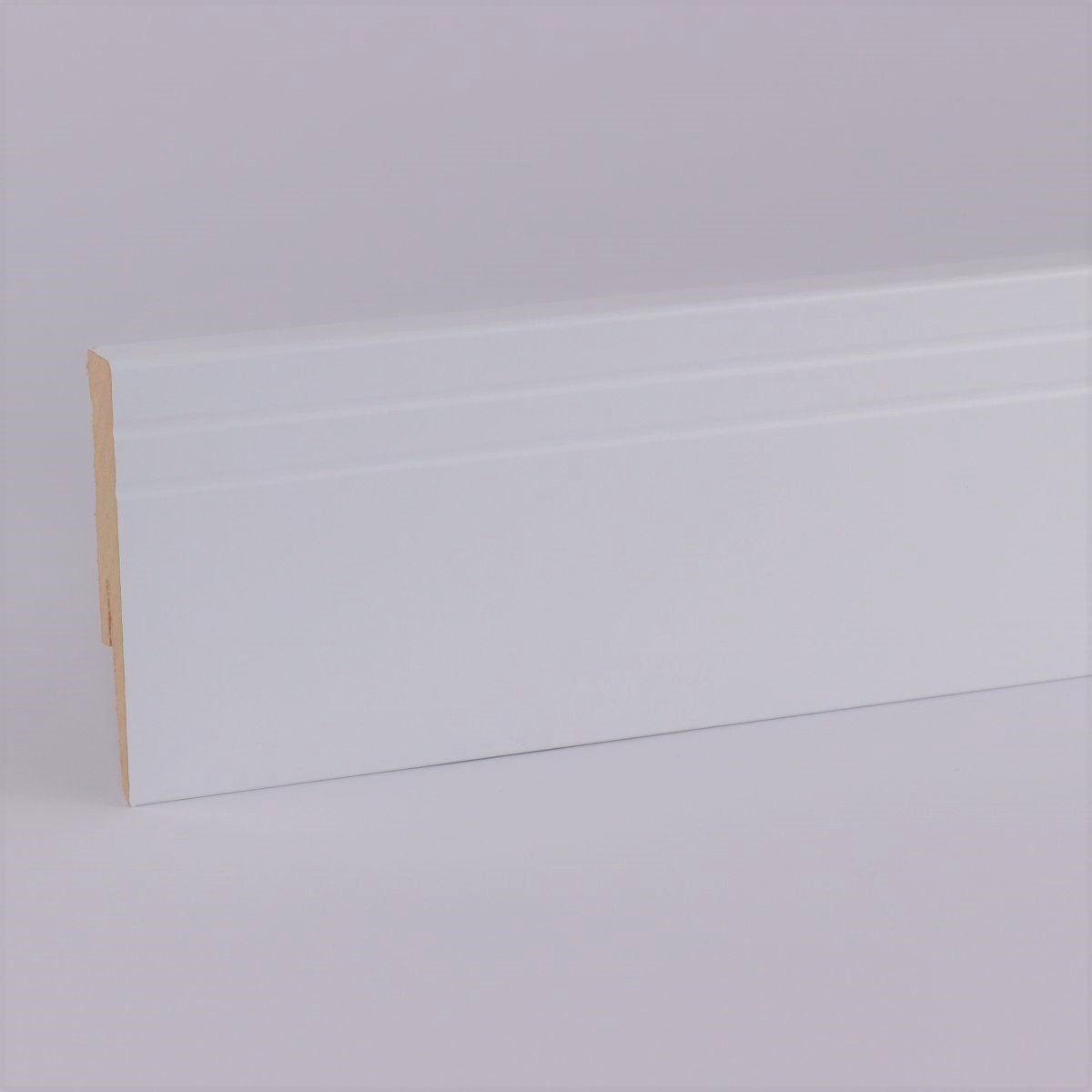 Plinthe profil Cottbusser 80 mm en blancNotre plinthe blanche au profil Cottbusser classique embellit chaque pièce grâce à son style sobre et intemporel. Grâce à leur système de clips simple, nos plinthes au profil Cottbusser se fixent facilement au mur. Elles couvrent ainsi une dimension de 17 mm x 80 mm x 2 400 mm. Noyau en MDF (panneau de fibres à densité moyenne) Laminage décoratif « blanc » Forme : profil Cottbusser Fixation : système de clips, collage ou vissage Dimensions hors tout : 17 x 80 x 2 400 mmMatériau :La plinthe est dotée d'un noyau en MDF (panneau de fibres de bois de densité moyenne). Celui-ci confère à la plinthe une flexibilité et une stabilité suffisantes. Le revêtement décoratif de qualité confère non seulement un aspect esthétique au profil Cottbusser, mais lui offre également une protection supplémentaire. La surface est ainsi résistante aux rayures et garantit la longévité de la plinthe. Montage :Les plinthes sont fixées au mur à l'aide d'un système de clips et peuvent être démontées sans dommage si nécessaire, par exemple lors de travaux de rénovation. Le canal pour câbles intégré vous permet de dissimuler les câbles derrière la plinthe. Vous pouvez également fixer les plinthes à l'aide de colle pour plinthes, de ruban adhésif double face ou du kit de fixation.