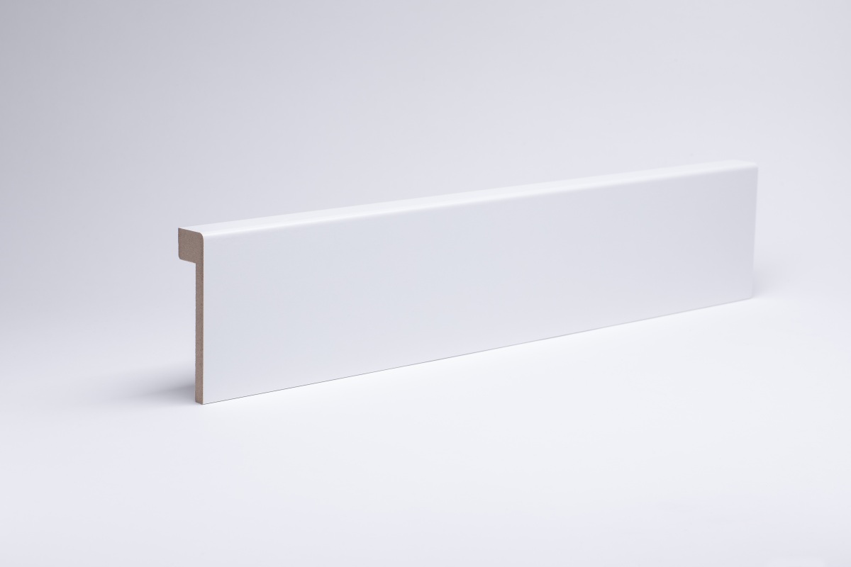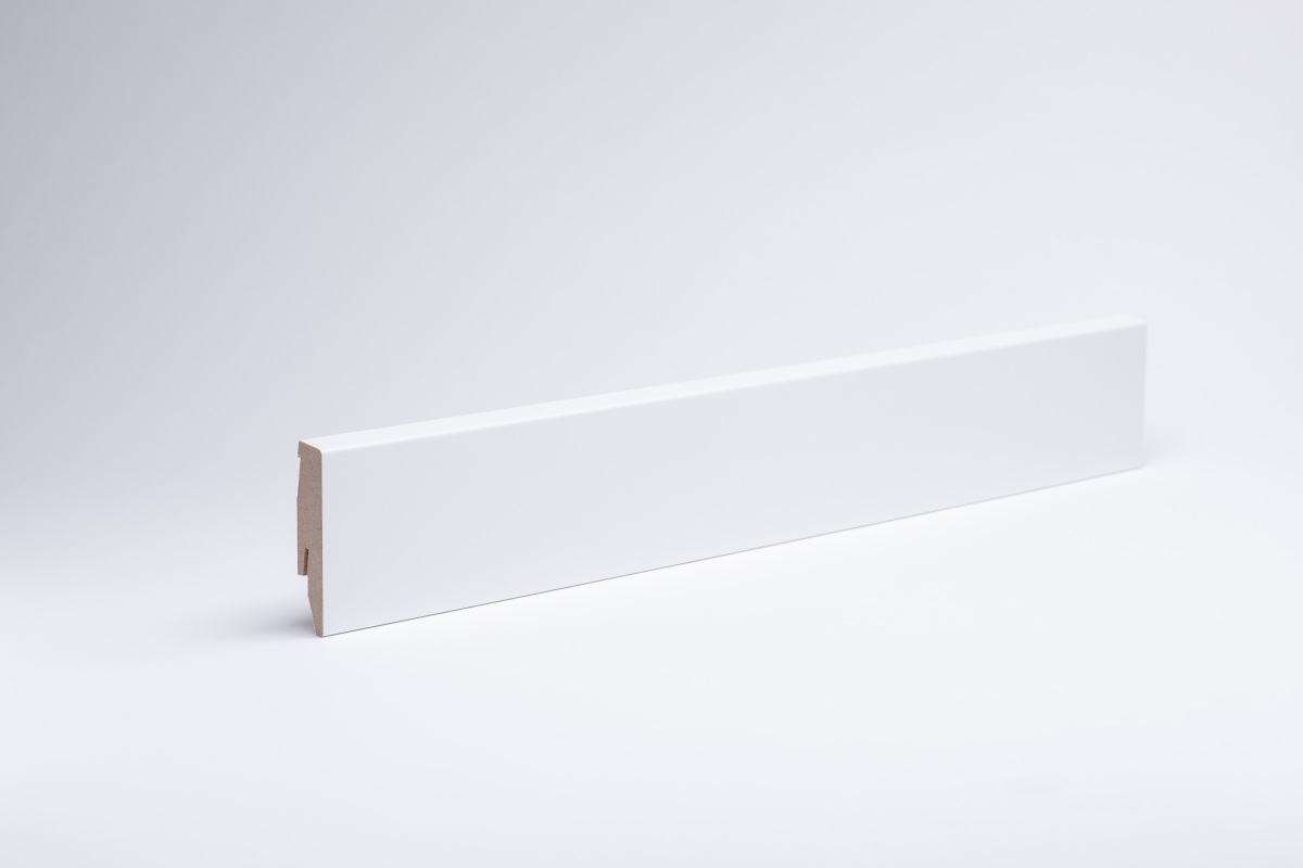 Plinthe profil Cottbusser 80 mm en blancNotre plinthe blanche au profil Cottbusser classique embellit chaque pièce grâce à son style sobre et intemporel. Grâce à leur système de clips simple, nos plinthes au profil Cottbusser se fixent facilement au mur. Elles couvrent ainsi une dimension de 17 mm x 80 mm x 2 400 mm. Noyau en MDF (panneau de fibres à densité moyenne) Laminage décoratif « blanc » Forme : profil Cottbusser Fixation : système de clips, collage ou vissage Dimensions hors tout : 17 x 80 x 2 400 mmMatériau :La plinthe est dotée d'un noyau en MDF (panneau de fibres de bois de densité moyenne). Celui-ci confère à la plinthe une flexibilité et une stabilité suffisantes. Le revêtement décoratif de qualité confère non seulement un aspect esthétique au profil Cottbusser, mais lui offre également une protection supplémentaire. La surface est ainsi résistante aux rayures et garantit la longévité de la plinthe. Montage :Les plinthes sont fixées au mur à l'aide d'un système de clips et peuvent être démontées sans dommage si nécessaire, par exemple lors de travaux de rénovation. Le canal pour câbles intégré vous permet de dissimuler les câbles derrière la plinthe. Vous pouvez également fixer les plinthes à l'aide de colle pour plinthes, de ruban adhésif double face ou du kit de fixation.