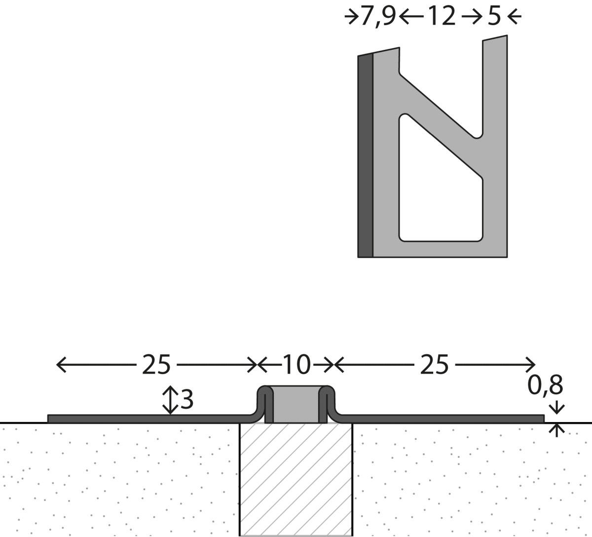 Profilé de joint de dilatation en acier inoxydable - avec joint EPDM - pour revêtement de 10mm - Gris 2,50m Les profilés pour joints de dilatation sont idéaux pour une utilisation sur les joints de chape ou partout où la tension dans le sol doit être compensée. Grâce au joint souple au milieu du profilé, les contraintes de compression et de traction sont compensées sans problème. Le profilé de joint de dilatation particulièrement résistant dispose d'un joint qui s'adapte discrètement à l'aspect régulier du joint. Les données en bref Profilé pour joint de dilatation en acier inoxydable. Joint EPDM, vulcanisé Couleur du joint : gris Convient pour des revêtements de 10mm Longueur : 2.500 mm Hauteur x largeur : 10,8 x 60 mm Convient pour : Revêtement de sol design / LVT Dryback, Revêtements de sol textiles et élastiques Domaine d'application : Le profilé de joint de dilatation est utilisé pour tous les revêtements de sol afin de ponter les joints de dilatation et de mouvement de construction. Le profilé est placé de telle sorte qu'il se trouve exactement au-dessus du joint dans le support, afin que le joint de sol puisse continuer à bouger. Montage : Collage: . Utilisez une colle à deux composants ou à base de résine de coulée ou une colle avec un pouvoir adhésif particulièrement élevé. Après avoir collé le profilé, retirez l'excédent de colle de manière lisse. Respectez les instructions du fabricant. Veillez impérativement à ce que la colle ne pénètre pas dans le joint de sol. Encastrement: Vous pouvez également encastrer le profilé à l'aide de mastics appropriés. Veillez à toujours choisir le profilé de manière à ce que la hauteur du profilé corresponde au revêtement de sol plus le mastic. Après le durcissement de la colle, le revêtement de sol peut être découpé pour s'adapter au profil. Nous recommandons d'utiliser ce profilé uniquement avec des revêtements de sol collés.