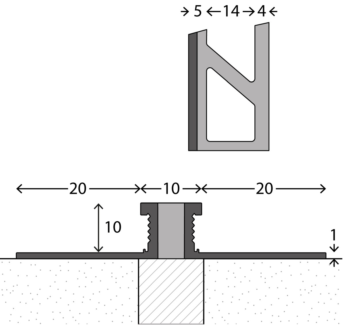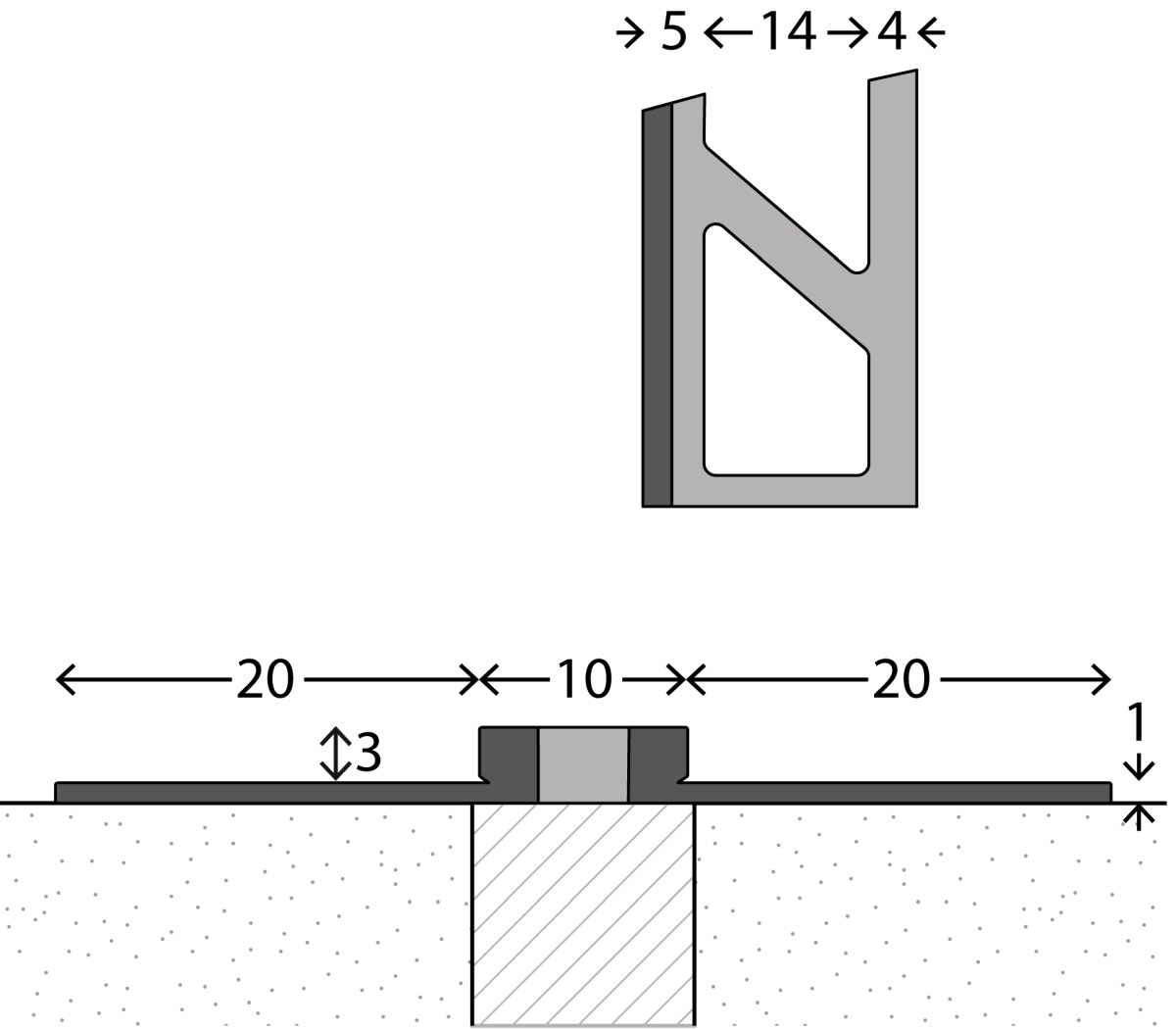 Profil de joint de dilatation en aluminium - avec joint EPDM - pour revêtement de 6mm - gris 3mLes profilés pour joints de dilatation sont idéaux pour une utilisation sur les joints de chape ou partout où la tension dans le sol doit être compensée. Grâce au joint souple au milieu du profilé, les charges de compression et de traction sont compensées sans problème. Le profilé de joint de dilatation particulièrement résistant dispose d'un joint qui s'adapte discrètement à l'aspect régulier du joint.Les données en brefProfilé pour joint de dilatation en aluminium.Joint EPDM, vulcaniséCouleur du joint : grisConvient aux revêtements de 6mmLongueur : 3.000 mmHauteur x largeur : 7 x 50 mmConvient pour : Revêtement de sol design / LVT Dryback, Revêtements de sol textiles et élastiques Domaine d'application :Le profilé de joint de dilatation est utilisé pour tous les revêtements de sol afin de ponter les joints de dilatation et de mouvement de construction. Le profilé est placé de telle sorte qu'il se trouve exactement au-dessus du joint dans le support, afin que le joint de sol puisse continuer à bouger.Montage :Collage: . Utilisez une colle à deux composants ou à base de résine de coulée ou une colle avec un pouvoir adhésif particulièrement élevé. Après avoir collé le profilé, retirez l'excédent de colle de manière lisse. Respectez les instructions du fabricant. Veillez impérativement à ce que la colle ne pénètre pas dans le joint de sol.Encastrement: Vous pouvez également encastrer le profilé à l'aide de mastics appropriés. Veillez à toujours choisir le profilé de manière à ce que la hauteur du profilé corresponde au revêtement de sol plus le mastic. Après le durcissement de la colle, le revêtement de sol peut être découpé pour s'adapter au profil. Nous recommandons d'utiliser ce profilé uniquement en combinaison avec des revêtements de sol collés.