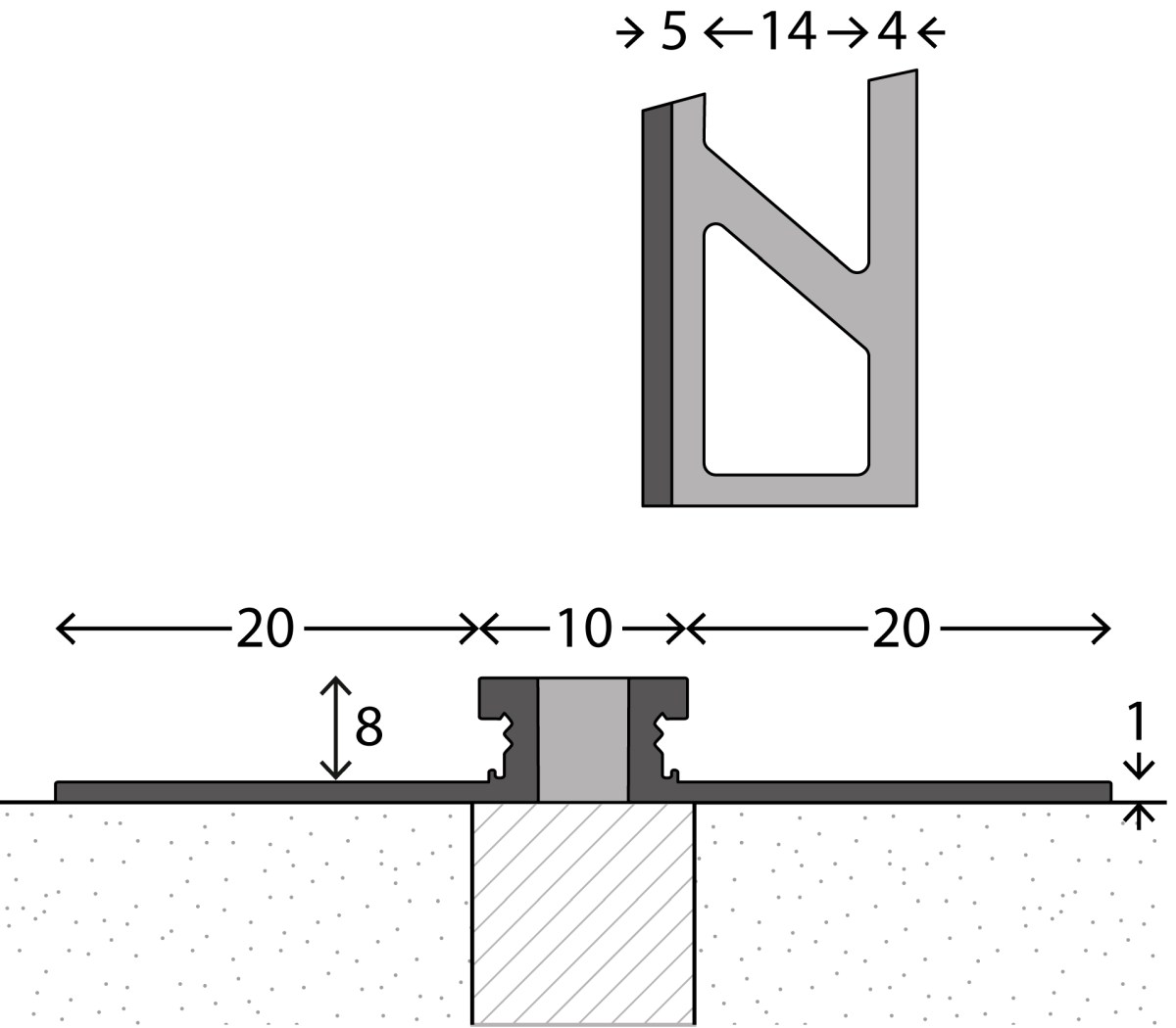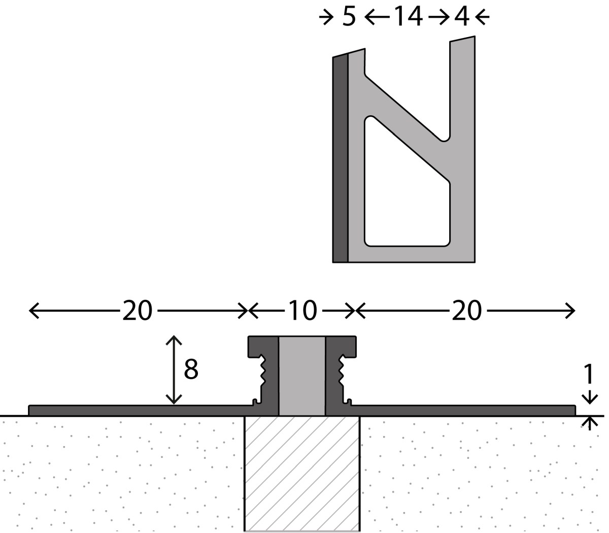 Profilé de joint de dilatation en aluminium - avec joint EPDM - pour revêtements de 8mm - Gris 2,50mLes profilés pour joints de dilatation sont idéaux pour une utilisation sur les joints de chape ou partout où la tension dans le sol doit être compensée. Grâce au joint souple au milieu du profilé, les charges de compression et de traction sont compensées sans problème. Le profilé de joint de dilatation particulièrement résistant dispose d'un joint qui s'adapte discrètement à l'aspect régulier du joint.Les données en brefProfilé pour joint de dilatation en aluminium.Joint EPDM, vulcaniséCouleur du joint : grisCompatible avec des revêtements de 8mmLongueur : 2.500 mmHauteur x largeur : 9 x 50 mmConvient pour : Revêtement de sol design / LVT Dryback, Revêtements de sol textiles et élastiques Domaine d'application :Le profilé de joint de dilatation est utilisé pour tous les revêtements de sol afin de ponter les joints de dilatation et de mouvement de construction. Le profilé est placé de telle sorte qu'il se trouve exactement au-dessus du joint dans le support, afin que le joint de sol puisse continuer à bouger.Montage :Collage: Utilisez une colle à deux composants ou à base de résine de coulée ou une colle avec un pouvoir adhésif particulièrement élevé. Après avoir collé le profilé, retirez l'excédent de colle de manière lisse. Respectez les instructions du fabricant. Veillez impérativement à ce que la colle ne pénètre pas dans le joint de sol.Encastrement: Vous pouvez également encastrer le profilé à l'aide de mastics appropriés. Veillez à toujours choisir le profilé de manière à ce que la hauteur du profilé corresponde au revêtement de sol plus le mastic. Après le durcissement de la colle, le revêtement de sol peut être découpé pour s'adapter au profil. Nous recommandons d'utiliser ce profilé uniquement en combinaison avec des revêtements de sol collés.