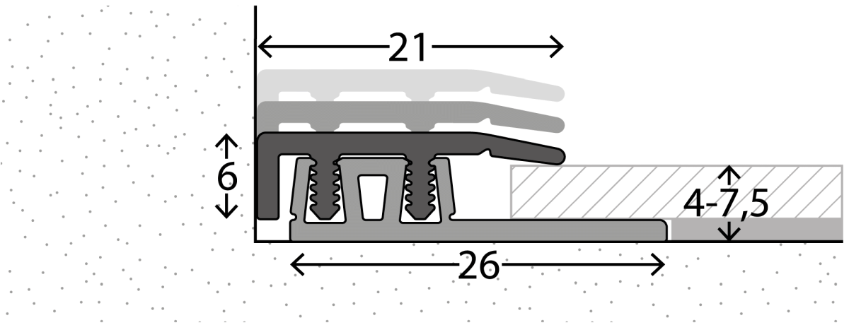 Seuil dadaptation, pour revêtements de sol de 6 - 13 mm.Structure du sol: 6 -13 mm. Avec Augmentation blocs pour 18 mm