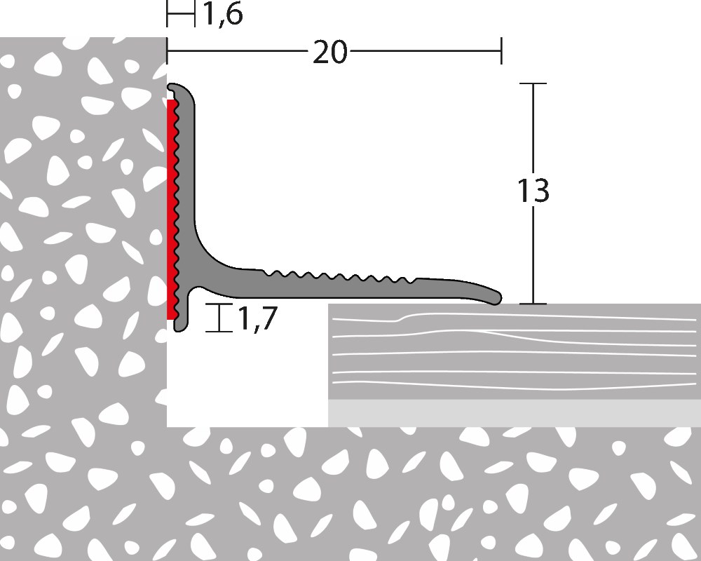 Raccord mural n° 290 acier inoxydable mat - solution au problème entre le mur et le sol.Le profil de raccordement mural en acier inoxydable mat, est, grâce à son design moderne et fin, universellement utilisable.Grâce au collage sur le mur, le profilé convient à toutes les épaisseurs de revêtements de sol flottants. Une pose dans des zones difficiles d'accès, comme par exemple derrière des radiateurs, est également possible sans complication.Aperçu des données.Profilé de raccordement mural en aluminiumAutocollantLargeur x hauteur : 19,8 x 13,1 mmPour la finition sur les portes de balcon et de terrasse, les fenêtres à hauteur du sol ainsi qu'au niveau du mur et du socle.Couvre les joints de dilatation jusqu'à 19,8 mm..Construction du sol : Convient pour toutes les épaisseurs de revêtement à partir de 2 mm.Montage : .Le profilé de raccordement mural possède une surface adhésive au dos. Cela garantit un montage rapide et simple au mur.