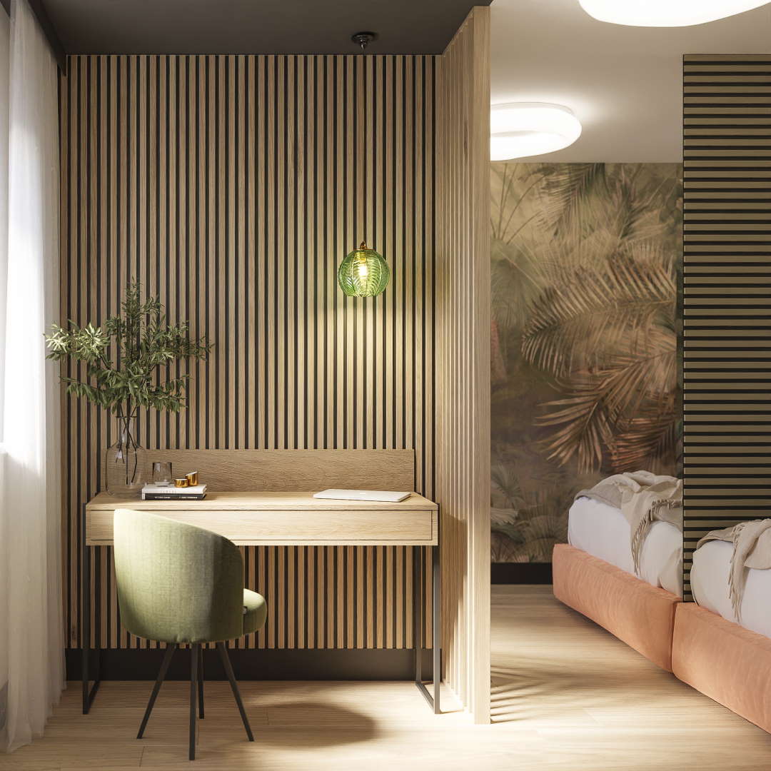 Panneau acoustique Acoustic+ 2400 x 600 mm Olive - Feutre acoustique noirPanneaux acoustiques haut de gamme dotés de la technologie CleanEdge : pas de bords visibles, un aspect lamellé moderne et une acoustique ambiante nettement amélioréeApportez plus de profondeur, de structure et de sérénité à vos pièces. Les panneaux acoustiques Acoustic+ de Leiste24 allient un aspect lamellaire moderne à une isolation acoustique fonctionnelle et une finition haut de gamme. Idéaux comme revêtement mural pour les pièces à vivre, les bureaux ou les couloirs particulièrement adaptés aux aménagements muraux modernes de grande envergure.Technologie CleanEdge la différence visible Lamelles entièrement recouvertes sans bords coupés apparents Un aspect soigné et haut de gamme sous tous les angles Nettement plus élégant que les panneaux acoustiques classiques aux bords MDF apparentsPourquoi choisir les panneaux acoustiques Acoustic+ de Leiste24 ? Améliorent sensiblement l'acoustique de la pièce Aspect moderne de mur à lamelles pour plus de profondeur et de structure Montage simple par collage ou vissage Finition haut de gamme pour des solutions murales durablesDétails du produit Lamelles en MDF avec revêtement décoratif de qualité en olive Dimensions : 2400 x 600 x 20 mm Feutre : noir (8 mm d'épaisseur) Matériau : MDF Dimensions des lamelles : 27 mm de largeur et 12 mm d'épaisseur Espacement entre les lamelles : 16 mm Panneaux muraux entièrement pré-assemblés Montage Le revêtement à lamelles est très rapide et facile à monter. Vous pouvez soit coller, soit visser les panneaux acoustiques au mur. Pour le plafond, nous recommandons de E coller et visserE en E combinaisonE La combinaison parfaite entre design et fonctionnalité pour des pièces qui ne sont pas seulement esthétiques, mais aussi plus agréables à vivre.