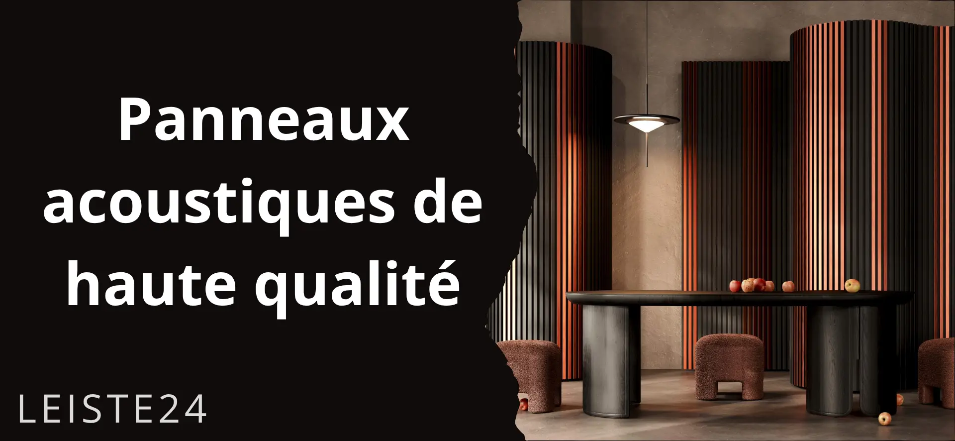 Panneau acoustique Acoustic+ 2600 x 400 mm Noir - Feutre acoustique noirPanneaux acoustiques haut de gamme dotés de la technologie CleanEdge : pas de bords visibles, un aspect lamellé moderne et une acoustique ambiante nettement amélioréeApportez plus de profondeur, de structure et de sérénité à vos pièces. Les panneaux acoustiques Acoustic+ de Leiste24 allient un aspect lamellé moderne à une isolation phonique fonctionnelle et une finition haut de gamme. Idéaux comme revêtement mural pour les pièces à vivre, les bureaux, les couloirs ou les espaces commerciaux.Technologie CleanEdge - la différence visible Lamelles entièrement recouvertes sans bords coupés apparents Un aspect soigné et haut de gamme sous tous les angles Nettement plus élégant que les panneaux acoustiques classiques aux bords MDF apparentsPourquoi choisir les panneaux acoustiques Acoustic+ de Leiste24 ? Améliorent sensiblement l'acoustique de la pièce Aspect moderne de mur à lamelles pour plus de profondeur et de structure Montage simple par collage ou vissage Finition haut de gamme pour des solutions murales durablesDétails du produit Lamelles en MDF avec revêtement décoratif de qualité en noir Dimensions : 2600 x 400 x 20 mm Feutre : noir (8 mm d'épaisseur) Matériau : MDF Dimensions des lamelles : 27 mm de largeur et 12 mm d'épaisseur Espacement entre les lamelles : 18 mm Panneaux muraux entièrement pré-assemblés Montage Le revêtement à lamelles est très rapide et facile à monter. Vous pouvez soit coller, soit visser les panneaux acoustiques au mur. Pour le plafond, nous recommandons une combinaison de collage et de vissage. La combinaison parfaite entre design et fonctionnalité pour des pièces qui ne sont pas seulement esthétiques, mais aussi plus agréables à vivre.