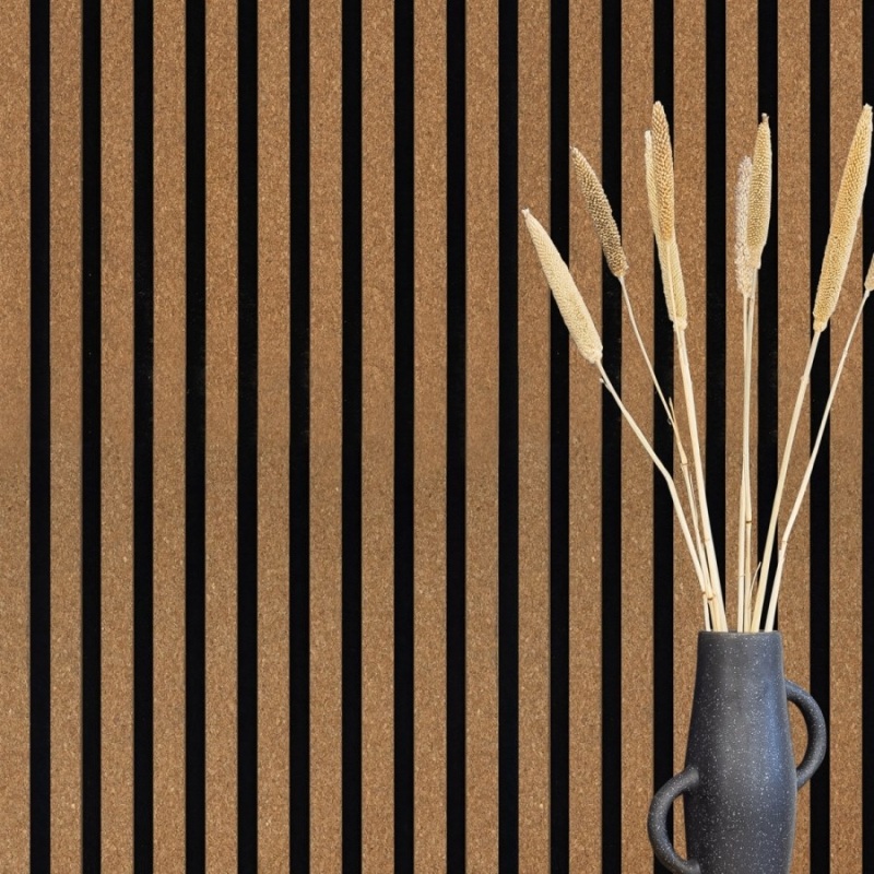 Panneau acoustique Acoustic+ Premium 2600 x 400 mm, placage en liège véritable « Kork fein » - feutre acoustique noirPanneaux acoustiques haut de gamme dotés de la technologie CleanEdge : pas de bords visibles, aspect lamellé moderne et acoustique ambiante nettement amélioréeApportez plus de profondeur, de structure et de sérénité à vos pièces. Les panneaux acoustiques Acoustic+ de Leiste24 allient un aspect lamellé moderne à une isolation phonique fonctionnelle et une finition haut de gamme. Idéaux comme revêtement mural pour les pièces à vivre, les bureaux, les couloirs ou les espaces commerciaux.Technologie CleanEdge la différence visible Lamelles entièrement recouvertes sans bords coupés apparents Un aspect soigné et haut de gamme sous tous les angles Nettement plus élégant que les panneaux acoustiques classiques aux bords MDF apparentsPourquoi choisir les panneaux acoustiques Acoustic+ de Leiste24 ? Améliorent sensiblement l'acoustique de la pièce Aspect moderne de mur à lamelles pour plus de profondeur et de structure Montage simple par collage ou vissage Finition haut de gamme pour des solutions murales durablesDétails du produit Lamelles en MDF avec placage en liège véritable - Liège fin Dimensions : 2600 x 400 x 20 mm Feutre : noir (8 mm d'épaisseur) Matériau : MDF Dimensions des lamelles : 27 mm de largeur et 12 mm d'épaisseur Espacement entre les lamelles : 18 mm Panneaux muraux entièrement pré-assemblés Montage Le revêtement à lamelles est très rapide et facile à monter. Vous pouvez soit coller, soit visser les panneaux acoustiques au mur. Pour le plafond, nous recommandons une combinaison de collage et de vissage. La combinaison parfaite entre design et fonctionnalité pour des pièces qui ne sont pas seulement esthétiques, mais aussi plus agréables à vivre.