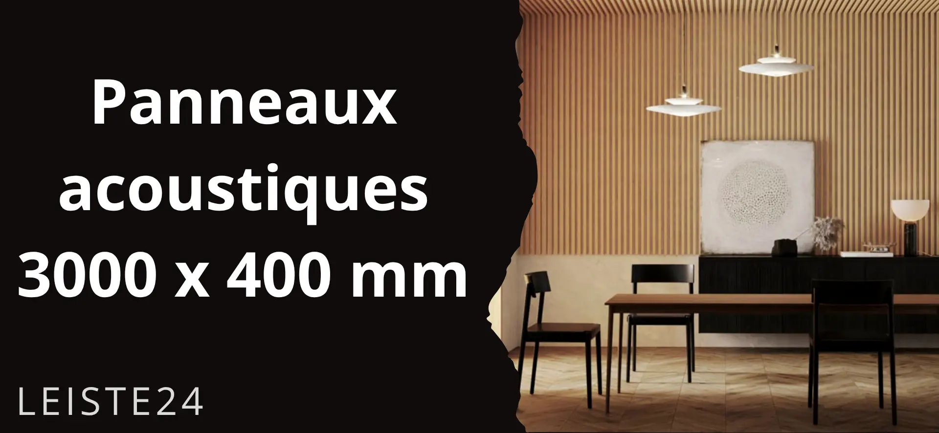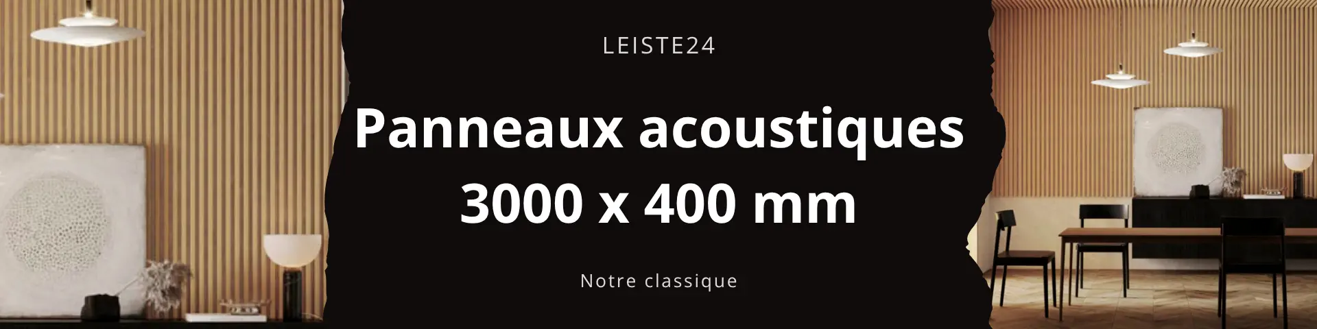 Revêtement en lames - Revêtement mural - Panneau acoustique sur mesureAvec nos panneaux acoustiques sur mesure, vous bénéficiez dune combinaison parfaite entre design et fonctionnalité. Commandez vos panneaux à la longueur souhaitée et profitez dun processus de commande simple et transparent.Comment commander vos panneaux acoustiques sur mesure :Choisissez vos panneaux souhaitésAjoutez les panneaux acoustiques de votre choix au panier. Ajoutez la découpeUne découpe est nécessaire par panneau. Sélectionnez donc le nombre correspondant de découpes. Indiquez la longueur souhaitéeSaisissez la longueur requise dans le champ de commentaire de la commande.Sur demande, nous pouvons également vous fournir les sections découpées. Longueurs maximales par panneau :260 cm pour les panneaux acoustiques mesurant 2600 x 400 mm 240 cm pour les panneaux acoustiques mesurant 2400 x 600 mm 300 cm pour les panneaux acoustiques mesurant 3000 x 400 mm Pourquoi choisir les panneaux acoustiques de Leiste24 ?Finition haut de gamme :Lames de 12 mm dépaisseur avec bords entièrement revêtus.Aucun bord MDF apparent pour un rendu esthétique de haute qualité. Design exclusif :Surfaces soigneusement travaillées pour une ambiance luxueuse.Designs intemporels et élégants pour sublimer vos espaces. Large choix :Différentes couleurs, surfaces et dimensions adaptées à tous les styles dintérieur. Excellente absorption acoustique :Réduction du bruit et amélioration de lacoustique des pièces.Idéal pour les bureaux, salons ou salles de conférence. Matériaux durables :Feutre fabriqué à partir de fibres plastiques recyclées et certifiées.Une démarche respectueuse de lenvironnement et durable. Qualité premium à prix équitable :Matériaux robustes et durables offrant le meilleur rapport qualité-prix. Avec les panneaux acoustiques de Leiste24, créez une atmosphère paisible et élégante dans vos espaces.Laissez-vous convaincre par la parfaite alliance entre design et fonctionnalité !